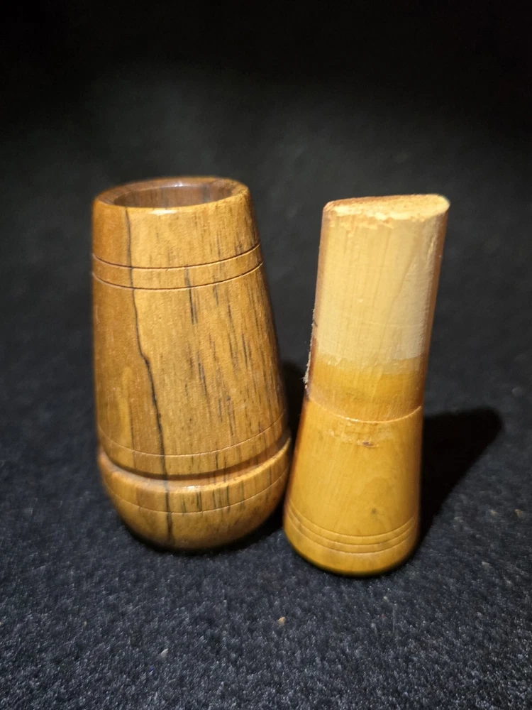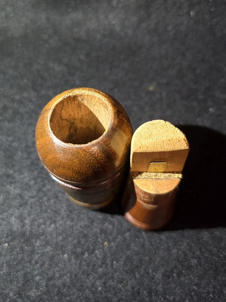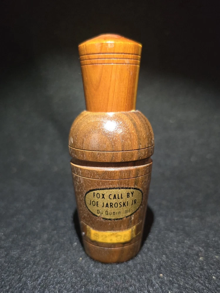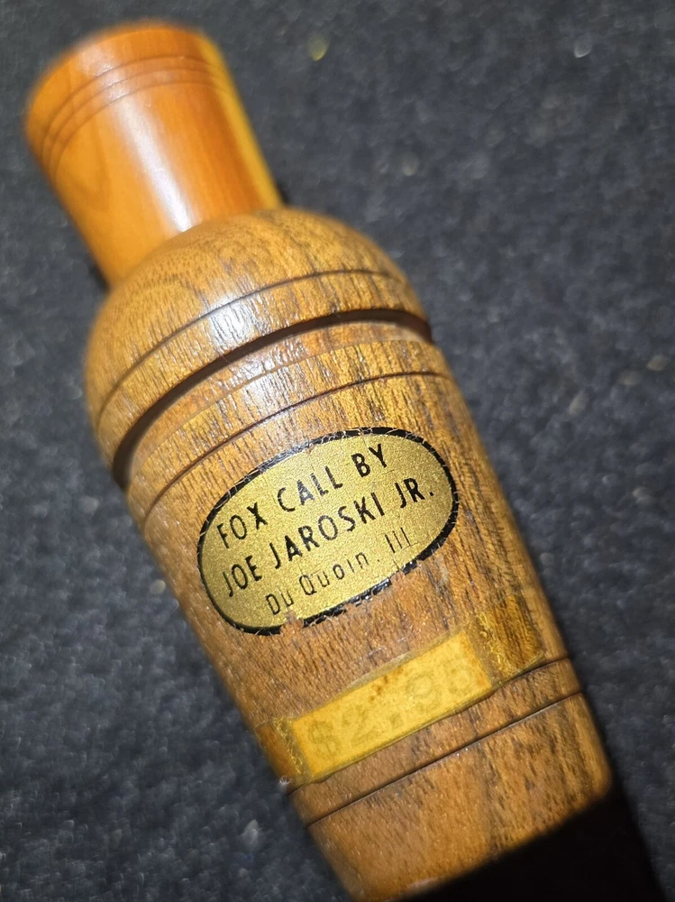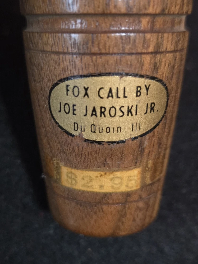 This Old FOX call by Joe Jaroski (1925-2011) is super rare it has a NICE Water Label and $2.95 Price Tag on the barrel. The call measures 2-3/4" tall. Super little call to add to any collection.