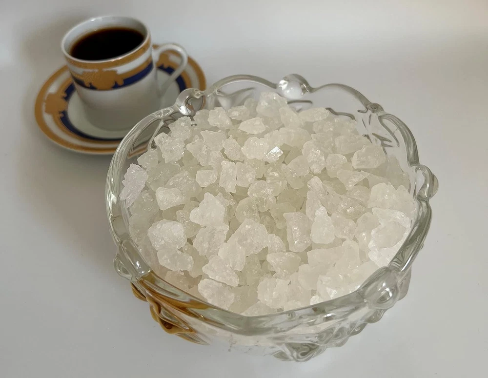 The purest sweetener for hot drinks like tea and coffee No color, no preservative and no flavor added Ingredient: Cane Sugar Rock candy crystal (rock sugar) is made by a crystallization process as diamond produces in nature, just with different ingredients. This process breaks apart sugar's molecular crystal lattice. After removing all impurities, in a high temperature and a specific time, the process allows producing larger and purer crystal of sugar that is known as classic rock candy crystals. This product is processed on a facility that also processes rock candy strings. May contain small pieces of string.