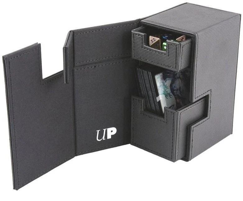 The included picture is a stock image The M2 Deck Box features a main compartment which holds up to 75 standard size sleeved cards. Also has a separate compartment for dice & tokens. Trays are removable to help organize contents in compartments. Dual color with reverse accent stitching presents a premium, unique style. (Accessories and Cards not included) We offer a combined shipping discount. Just add the items you are interested in to your eBay cart to determine your combined shipping cost and options. Thanks for shopping with ABUGames!
