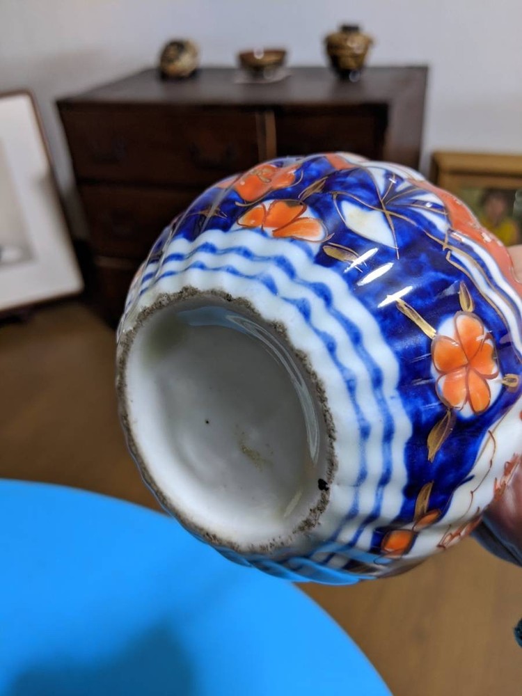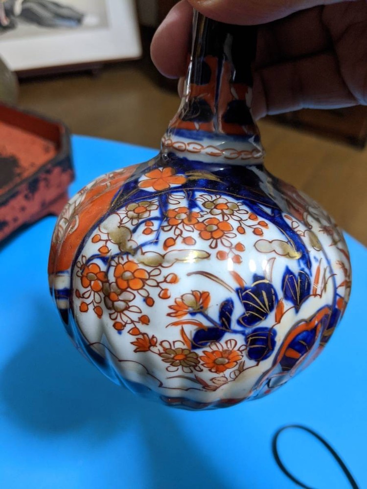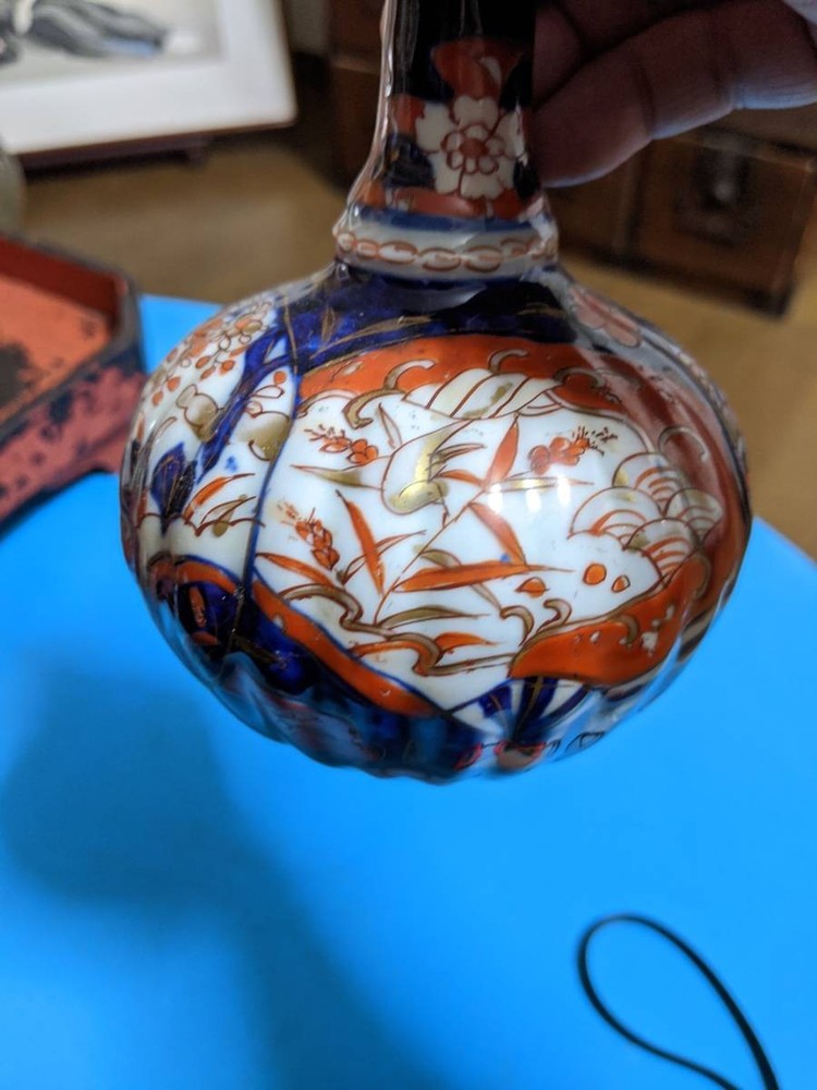 Old Imari Crane Neck Sake Bottle Antique Japanese Pottery No Chips or Repairs