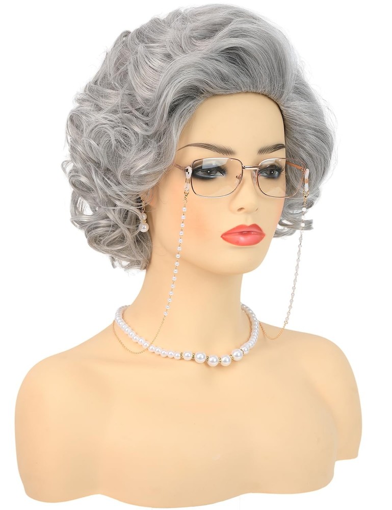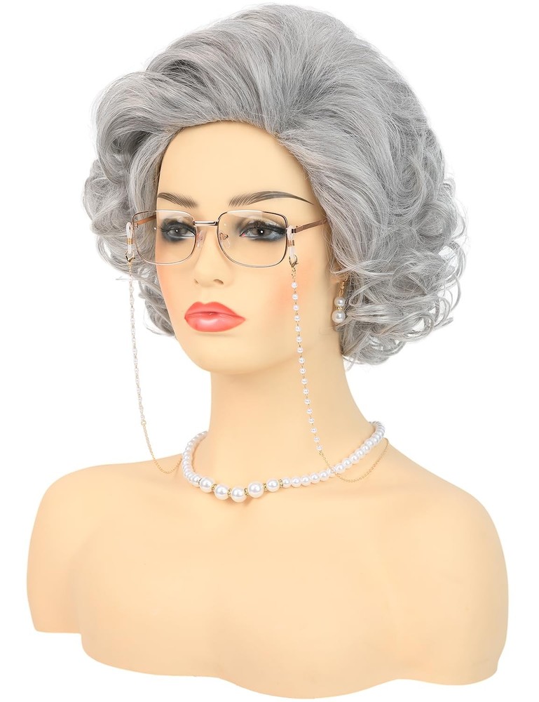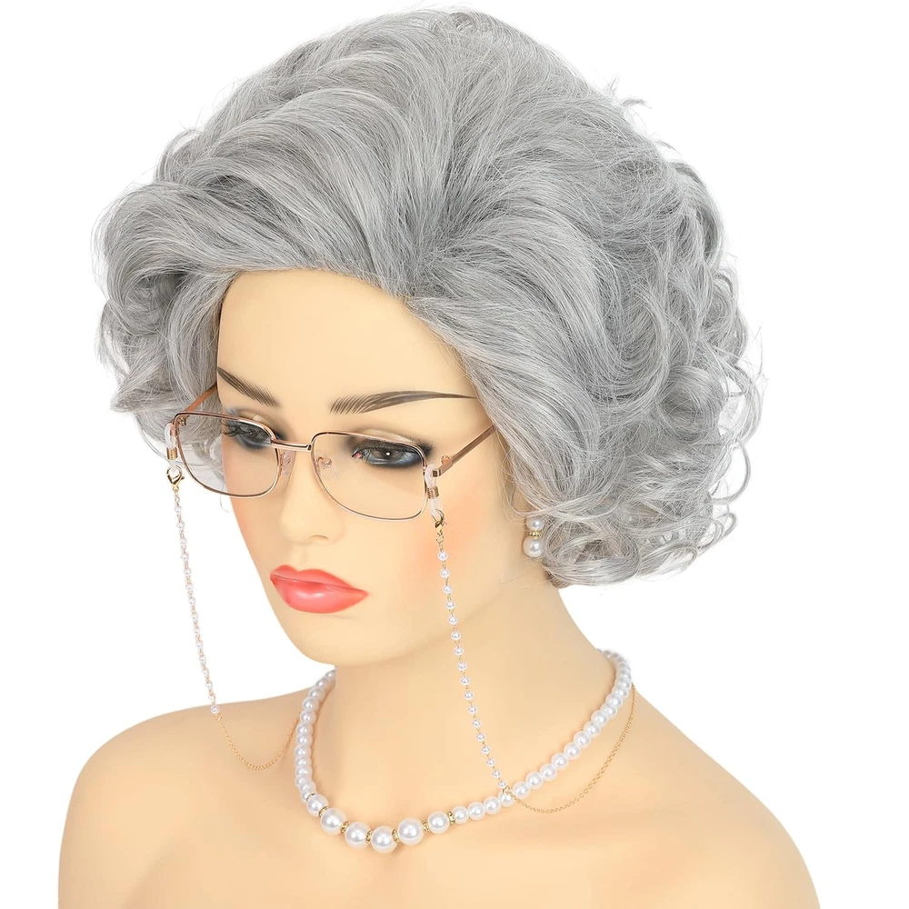 Fast Shipping On All Items 30 Days Money Guarantee Customer Support Excellent Service 100% Satisfaction Satisfaction Guaranteed Old Lady Wig Costume Set for Women Short Curly Grandma Wig and Glasses Silver... Specification Department womens 10.0 inches x 11.5 inches x 4.0 inches. Weight: 0.71 oz Item Description Package Includes: 1pc Old Lady Wig + 1pc Granny Glasses + 1pc Glasses + 1 Pair of Artificial Pearl Earrings + 1pc Artificial Pearl Necklace + 1pc Artificial Pearl Bracelet+ 1pc Wig Cap Short Curly Old Lady Wig: This is a sliver grey grandma wig for women, and comes pre-styled. Enjoy a professional-looking old lady costume wig that is soft and natural, thick and lightweight, it has beautiful curls, you don’t have to handle too much, just wear it on and turn into a stylish, elegant old lady! Premium Synthetic Fibers: With 100% high-quality heat-resistant synthetic fiber construction, you can wear the adult old lady wig and glasses to create that authentic, kind, and gentle granny look, and party like a superstar! One Size Fits All: The average cap size circumference is 22.5 inches with 2 adjustable straps and 8 limit holes in the back, which can be adjusted to a comfortable position to be suitable for most adults and teens head sizes. Not only is it itch-free and breathable, but it fits large and small heads – and is easy to adjust too! Multipurpose: Whether you're planning to wear it on a daily basis or for special occasions, the grandma wig and accessories are an ideal choice. Its soft and natural hair makes it perfect for a wide range of events, from sitcom 100 Days of School parties, Old Lady costumes, Grandma Granny cosplay events, to Halloween costume parties. About us We offer the best prices around on high quality products. Our E-store includes media such as books, movies, music and games while offering electronics, toys, sporting apparel, clothing, tools, general home, garden items and more. Shipping We are always working hard to ensure your package arrives as soon as possible. Please understand that some factors like weather, high postal traffic, and the performance of shipping companies are outside of our control. We offer free shipping to the lower 48 states and ship within 2-3 business days of payment, usually sooner. We do not accept P.O. Boxes. Please provide a physical address. For shipping outside of the continental USA, we only use eBay's Global Shipping Program.The item is shipped to KY and then sent to the rest of the world. International customers are responsible for all duties and taxes. Continue to check out to calculate costs for shipping the item to your country. Messages regarding eBay's Global Shipping Program MUST be directed at eBay EXCLUSIVELY. Returns We offer a 30-Day Return Policy on items in which you are not completely satisfied with. You have the option of a full-refund or an exchange of the item. No returns are available on items shipped outside of the USA Satisfaction We try over very best to make sure every customer is completely satisfied. If there's a problem, message us! We're happy to help. Payment Options Shop With Confidence
