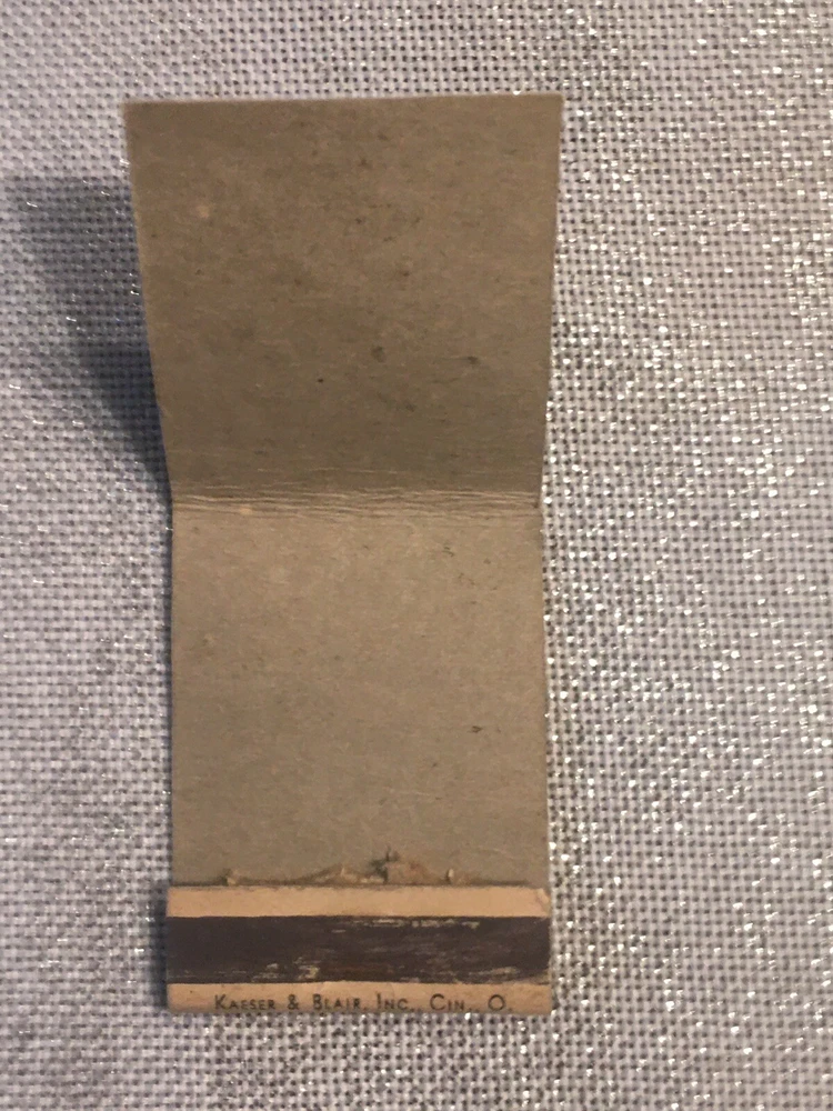 Authentic vintage matchbook cover. The item in the pictures is the exact item you will receive. We do not use any stock photos. I offer 100% money back guarantee on all items! We will be listing thousands of items over the next few months that were found in a collectors garage. The items were stored nicely and most of them have not seen the light of day in over 30 years. The collector was into old matchbook covers, casino matchbooks, old maps from the 1800's, old postcards, stamps and many other collected items so please keep an eye on my sellers page for new listings everyday. Almost every item will be started at .01 at auction with no reserves. Check my feedback and bid with confidence. Shipping is $1.99 and item will be mailed first class mail none machinable. I cannot combine shipping due to the fact that each item is packed and sealed with an inventory # as soon as it is listed.