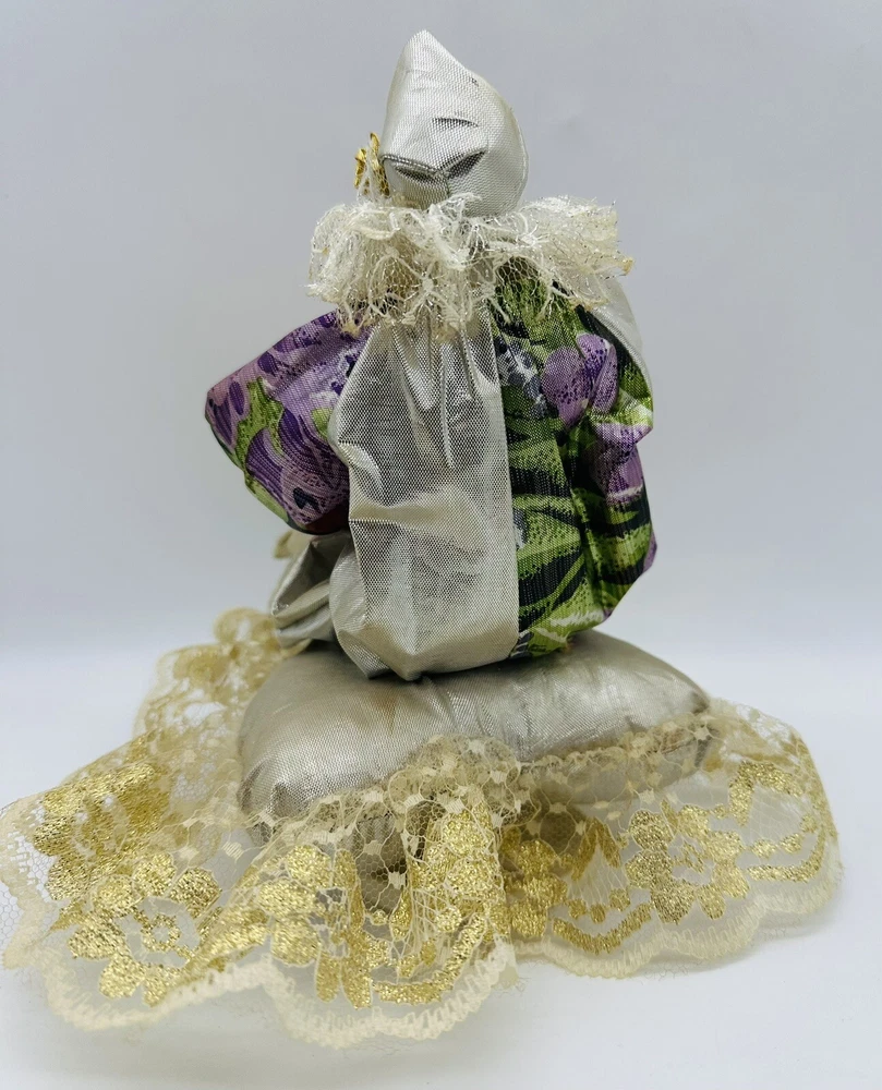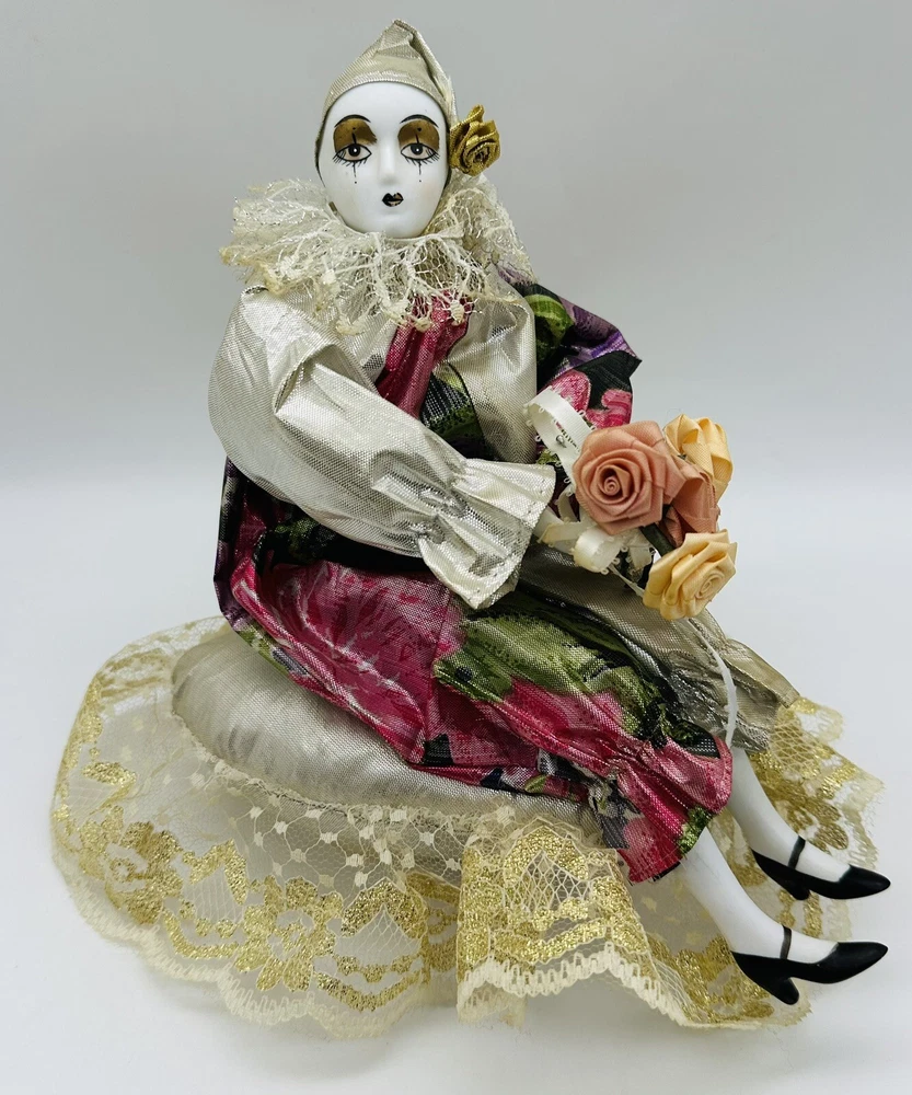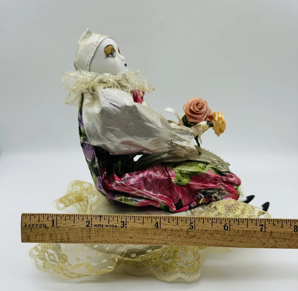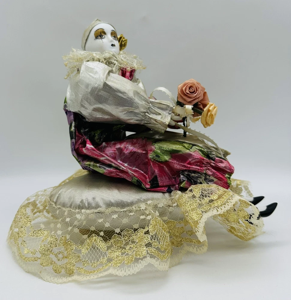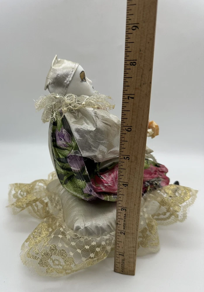 Old Musical Rotating Porcelain Doll Harlequin Clown Girl on a Brocade Pillow. Approximate size 8 inches high. Hi thanks for dropping by. I do give you my eBay shipping discount, within the USA, saving you some more money :-). eBay shipping discount does not apply to International shipping. Please also look at the Item specifics. Condition is preowned/ used. Overall good clean working condition. Unfortunately, I don’t know the name of the song playing. Minor aging/storage wear/ imperfections/scratches/marks. Please look at photos as part of the description. Shipped with USPS Ground Advantage. I do combine shipping to save you money. *Please note that vintage/antique items may have standard wear from age and/or use. Even though I Thoroughly clean and inspect all used/old items there may be a chance of some old Oder Remaining thanks Thank you for your time and thank you for supporting my small home business ,have a great day. Stay well and safe. PLEASE NOTE: ALL SHIPPING IS CALCULATED BY THE CARRIER BASED ON WEIGHT, SIZE, AND DESTINATION OF SHIPMENT. I usually ship the same or the next business day. Shipping delivery Estimated time is based on what the Carrier or EBAY estimates and it’s not guaranteed by me. Thanks.