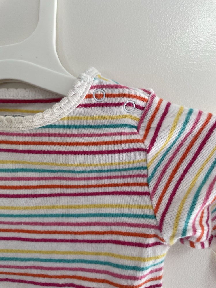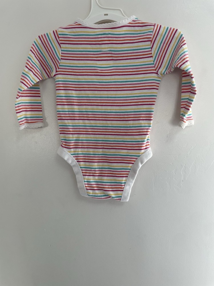 Old Navy Baby Girls Rainbow Striped 100% Cotton Long Sleeve Bodysuit Cream 6-12M. Condition is pre-owned. Smoke free, pet free home. Shipped via USPS Ground Advantage. In good condition. There is a light stain on the front. Free of rips.