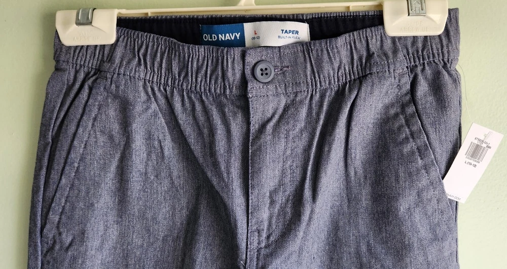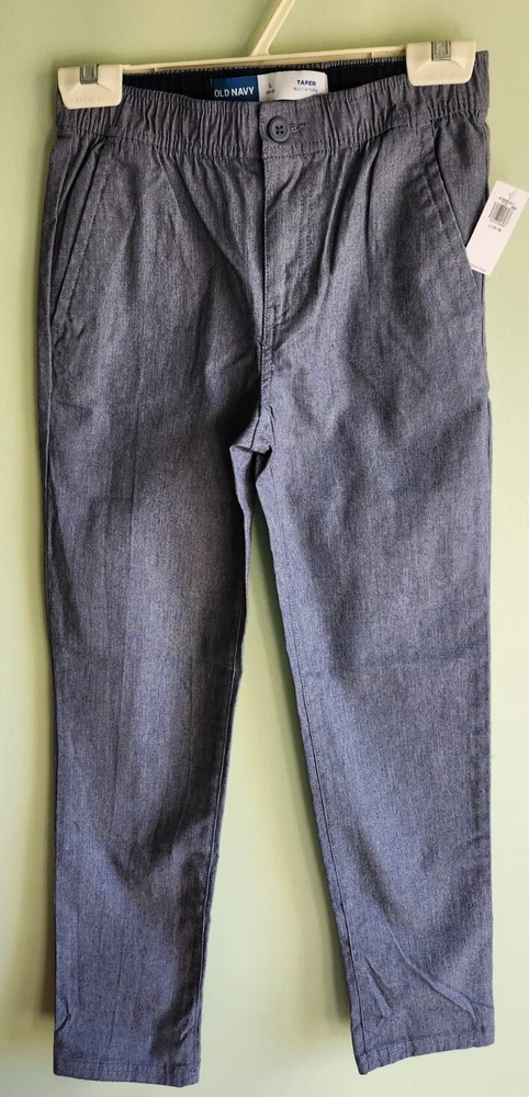 Color: Gray Size: 10-12 Character: Boy Brand: Old Navy Features: Stretch Fit: Slim Taper Style: Chino gtin13: 500087006068 Department: Boys Type: Pants Closure: Button, Stretch Waist UPC: 500087006068 Material: 61% Cotton, 37# Polyester, 2% Spandex