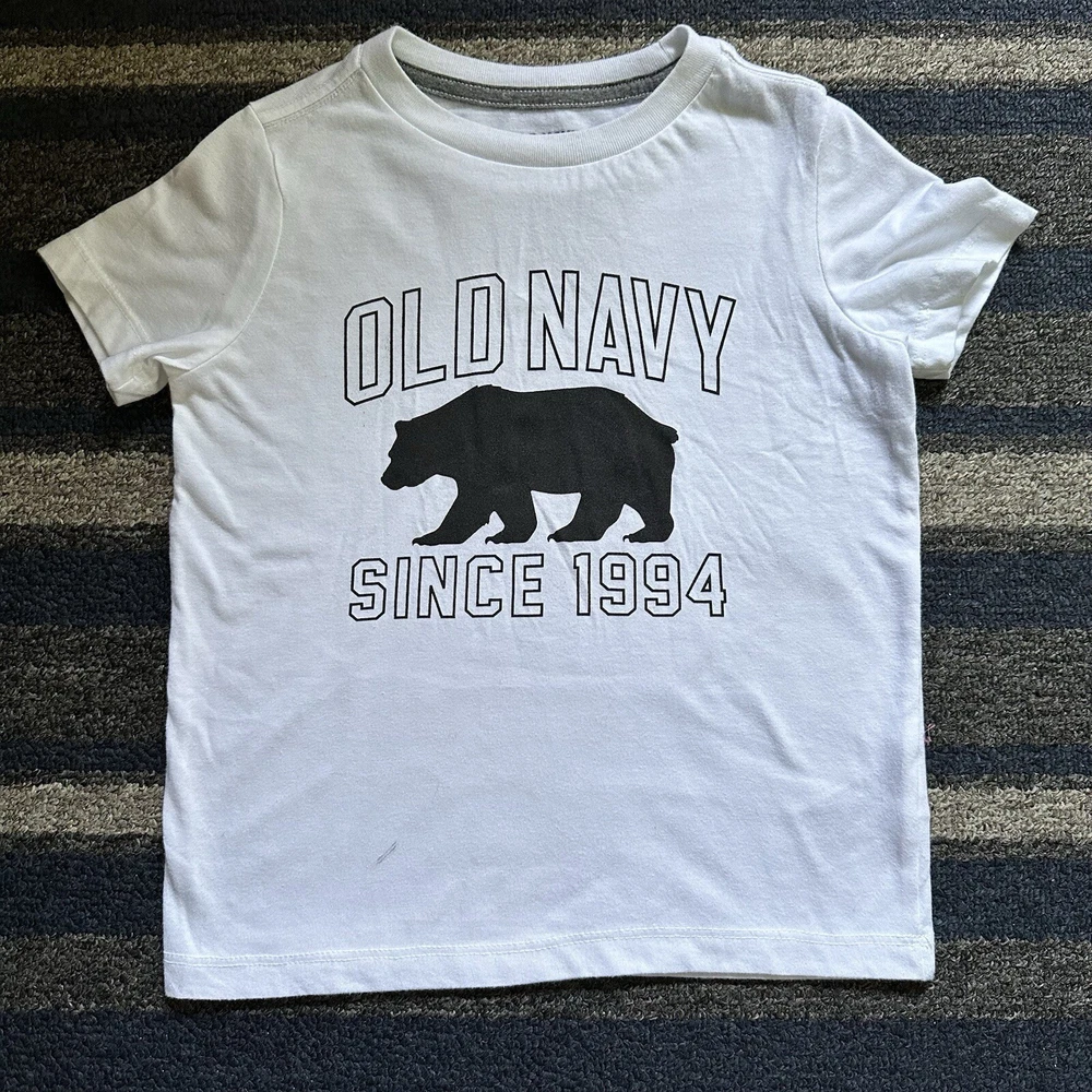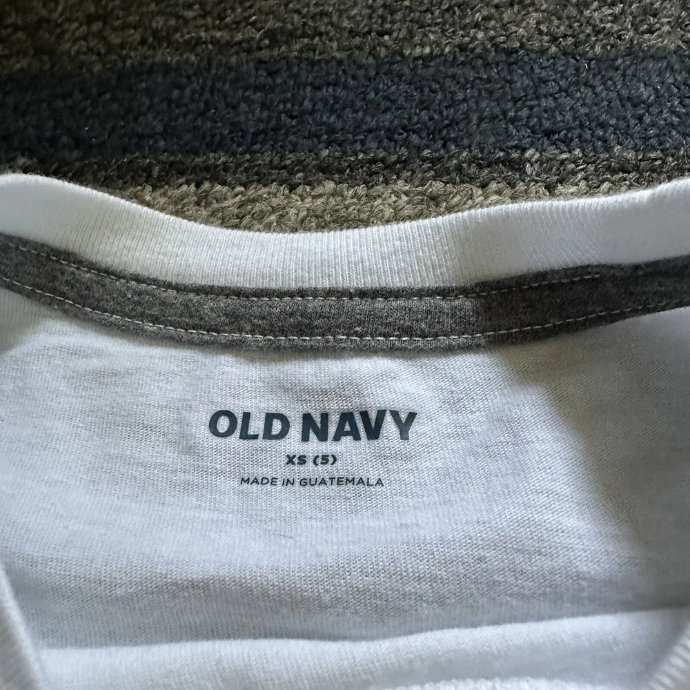 Old Navy Boys 6 Piece Short Sleeve Graphic Tees Clothing Lot * Size XS 5 * Gently used- white tee has small stain- see pic * Great for play or school Smoke & Pet Free Home
