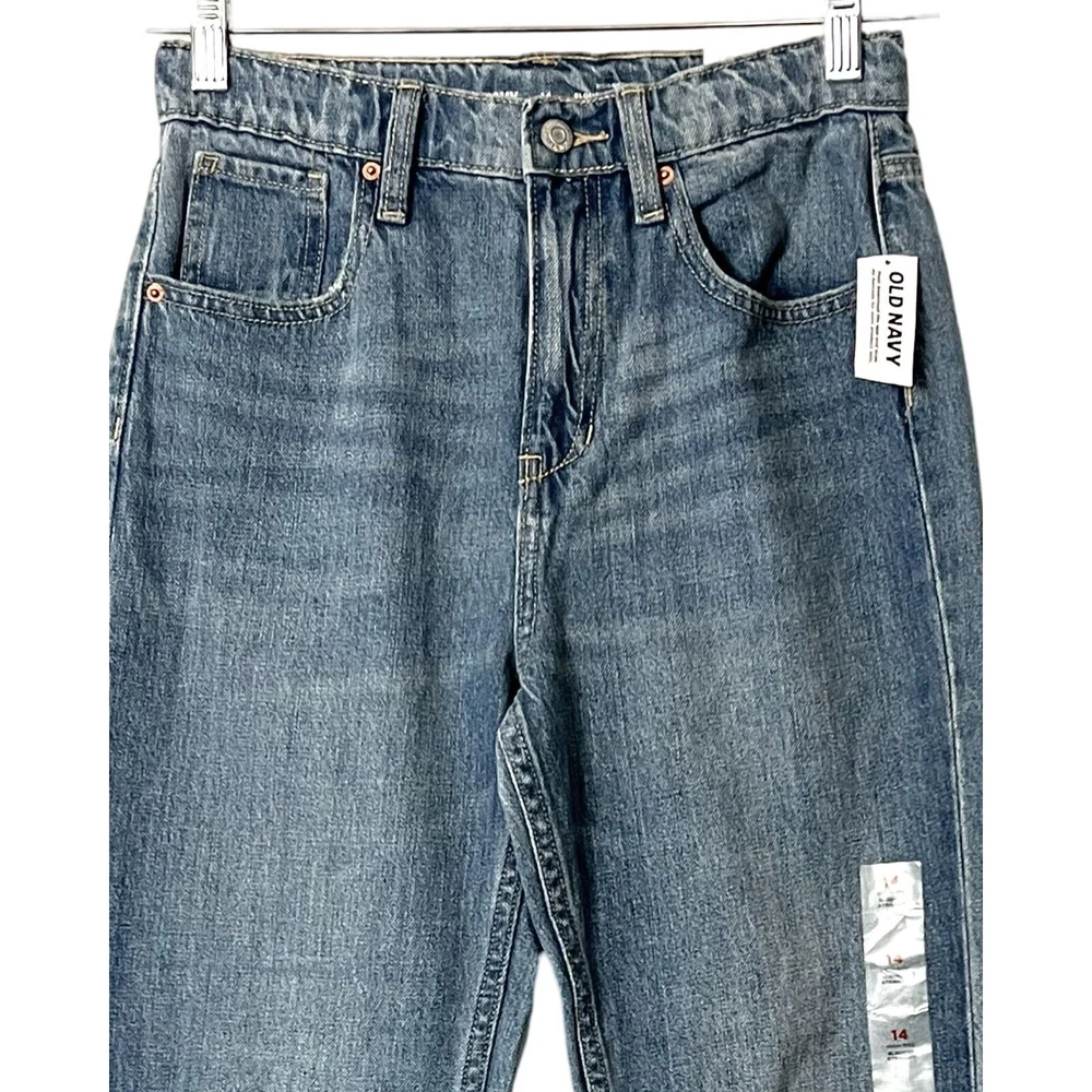 Old Navy Jeans Girls Size 14 Blue High Rise Slouchy Straight Medium Wash NEW