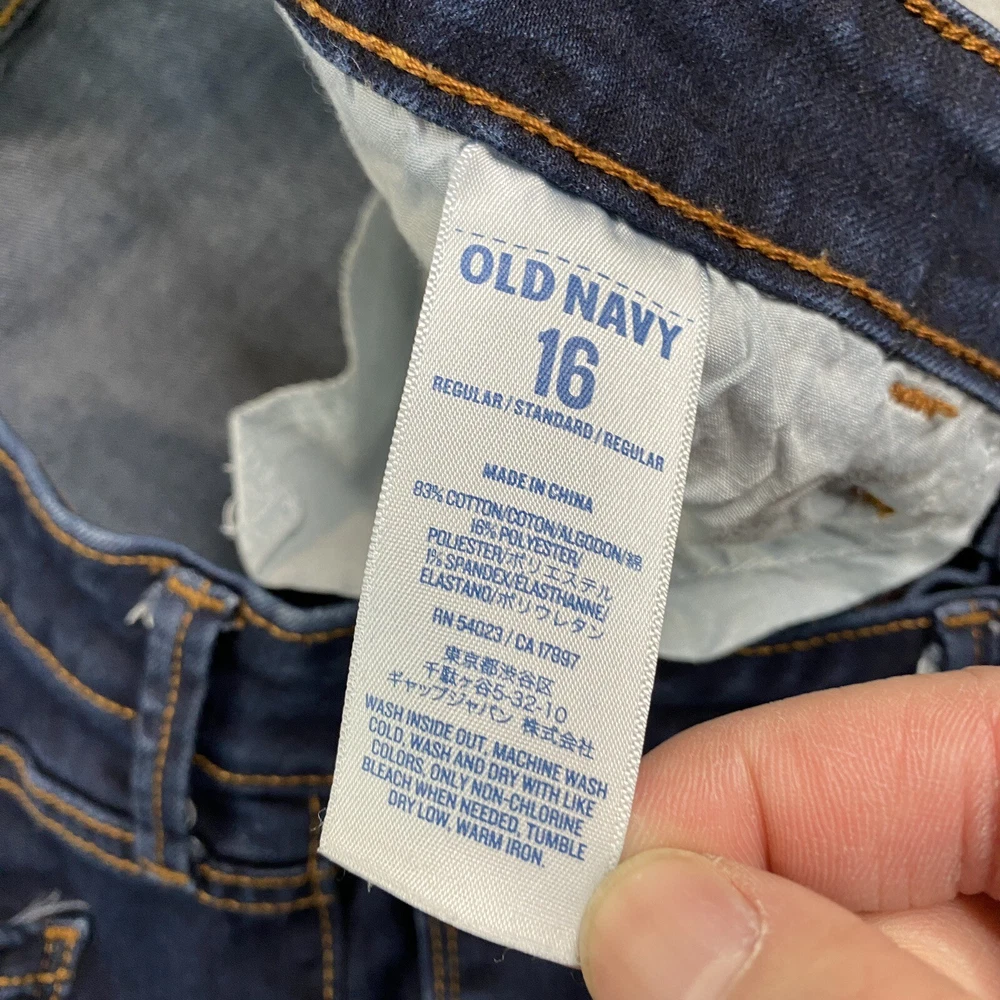 Handmade: No Brand: Old Navy Material: Cotton, Cotton Blend, Polyester, Spandex Suspender Buttons/Belt Loops: Belt Loops Features: Pockets, Stretch Garment Care: Machine Washable Type: Jeans Fit: Slim Pattern: Solid Size: 16 Closure: Button, Zip Fabric Type: Denim Seller Notes: “has signs of use and wear. Item is in used condition with no holes or stains. minor distressing” Accents: Button, Zipper Model: Rockstar Waist Size: 33 in Country/Region of Manufacture: China Inseam: 29 in Theme: City, College, Preppy, School, American, Casual, Work, Ladies, mom, chic, teen, workwear Department: Women Fabric Wash: Dark Rise: High (Greater than 10.5 in) Size Type: Regular Pocket Type: 5-Pocket Design Style: Skinny Vintage: No Color: Blue Season: Fall, Spring, Summer, Winter