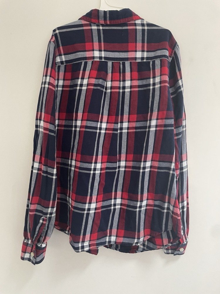 Old Navy Kids Boys Classic Flannel Plaid Button-Up Long Sleeve Shirt Navy Red S. Condition is pre-owned. Smoke free, pet free home. Shipped via USPS Ground Advantage. Measures approximately 18.5 inches across the chest and 24 inches from top to bottom. In very good condition. Free of rips or stains.