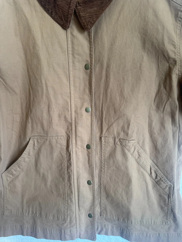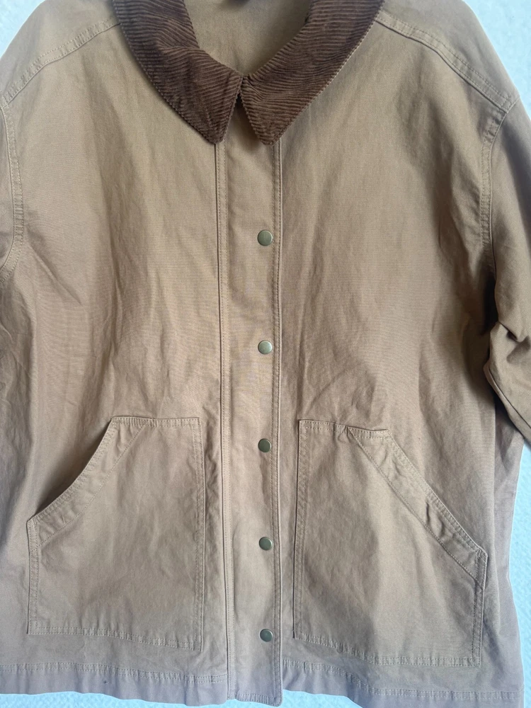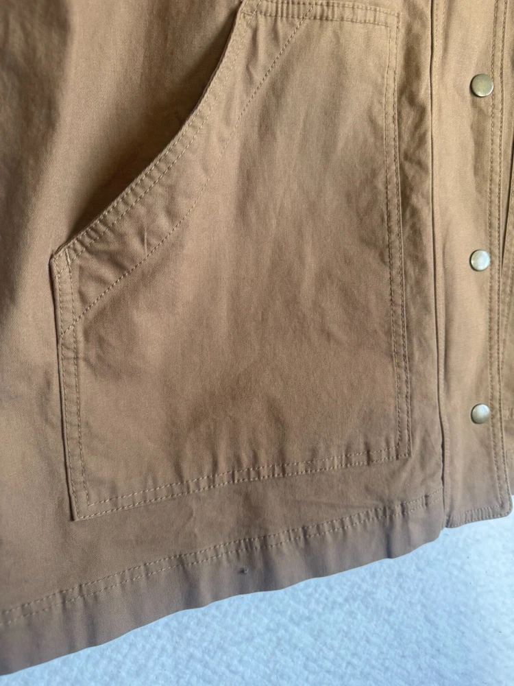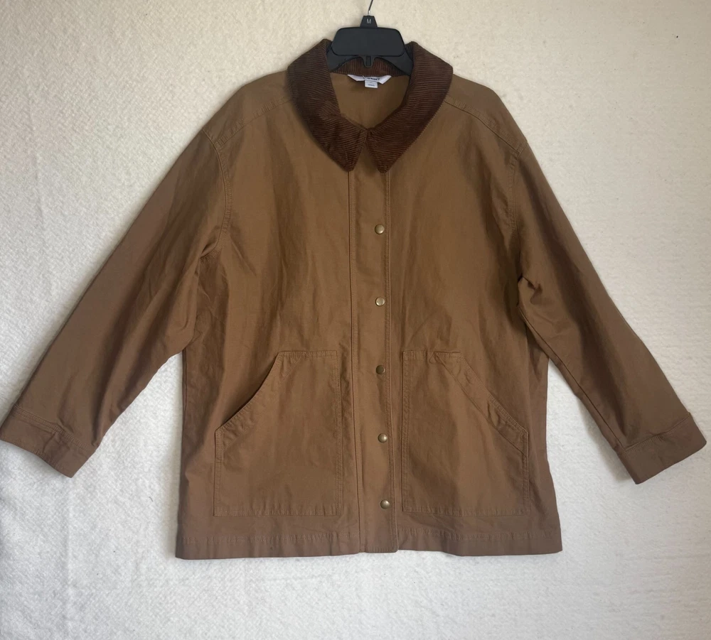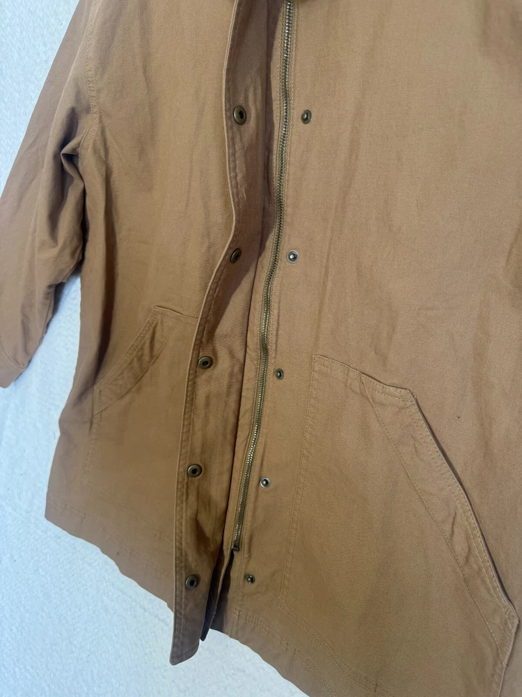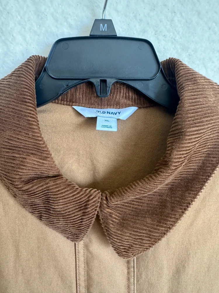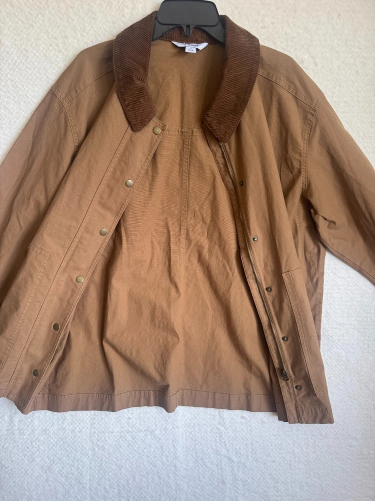 Elevate your wardrobe with the classic comfort of Old Navy's outdoor chore, barn jacket in a versatile brown. Designed with a nostalgic nod to the '90s, this piece seamlessly blends retro style with modern functionality, featuring a canvas cotton shell perfect for layering on those brisk evenings. The jacket boasts a thoughtful blend of snap and zipper closures, ensuring a secure and snug fit. Whether you're hitting the town or enjoying a casual day out, this jacket is an ideal pick for travel, workwear, or everyday style. The solid pattern and timeless design make it a go-to for any occasion. APPROXIMATE MEASUREMENTS Length: 29" Sleeves: 23" Chest: 27" Size XL Great condition! No tears or stains. Pet-free and smoke-free environment