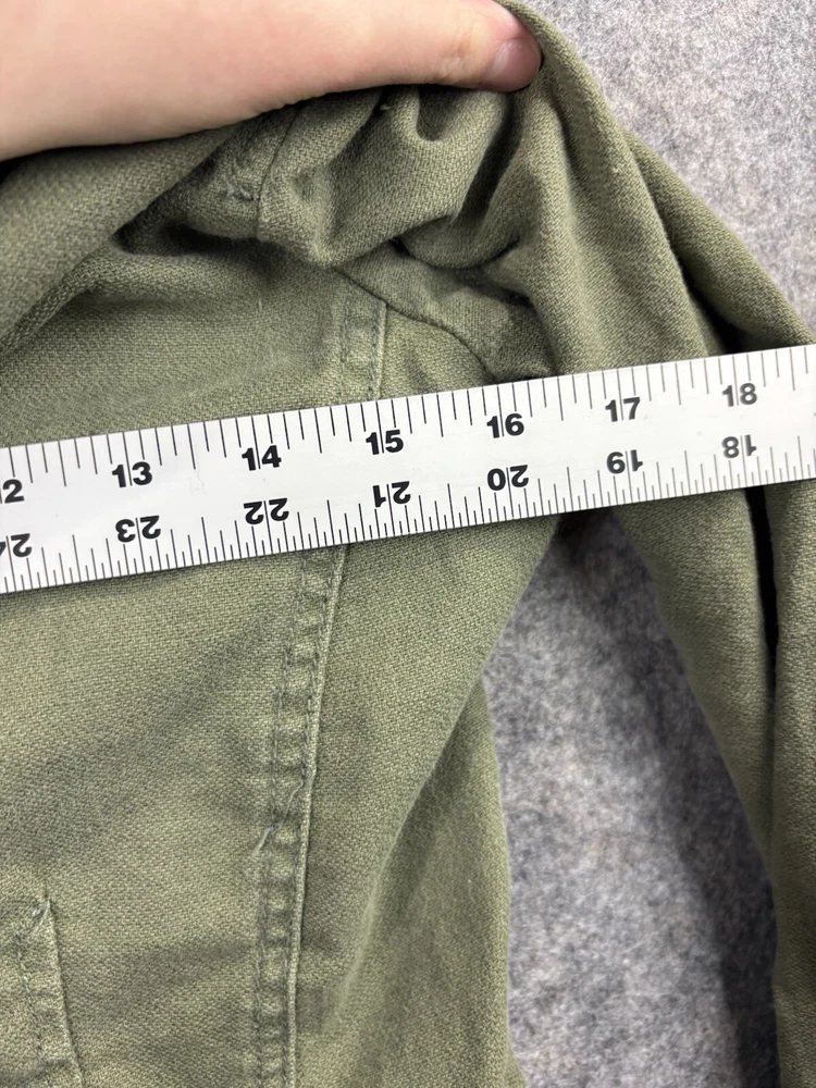 Size: S Outer Shell Material: Linen Blend Lining Material: N/A Pattern: Solid Size Type: Regular Model: Old Navy M65 Utility Jacket Personalize: No Closure: Snap, Zip Country/Region of Manufacture: Indonesia Style: Military Jacket Performance/Activity: Hiking, Hunting, Riding, Walking Season: Fall, Spring, Summer, Winter Theme: Army, Classic, Outdoor, Military, Utility, Workwear, Safari, Y2K, Boho, Coastal Handmade: No Features: All Seasons, Collared, Full Zip, Hooded, Lightweight, Pockets Type: Jacket Brand: Old Navy Garment Care: Machine Washable Product Line: Old Navy Occasion: Casual, Party/Cocktail, Travel, Workwear Color: Green Fit: Regular Department: Unisex Adults Accents: Zipper, Snaps Insulation Material: N/A Warmth Weight: n/a Collar Style: Stand-Up Jacket/Coat Length: Mid-Length Vintage: No Fabric Type: Canvas