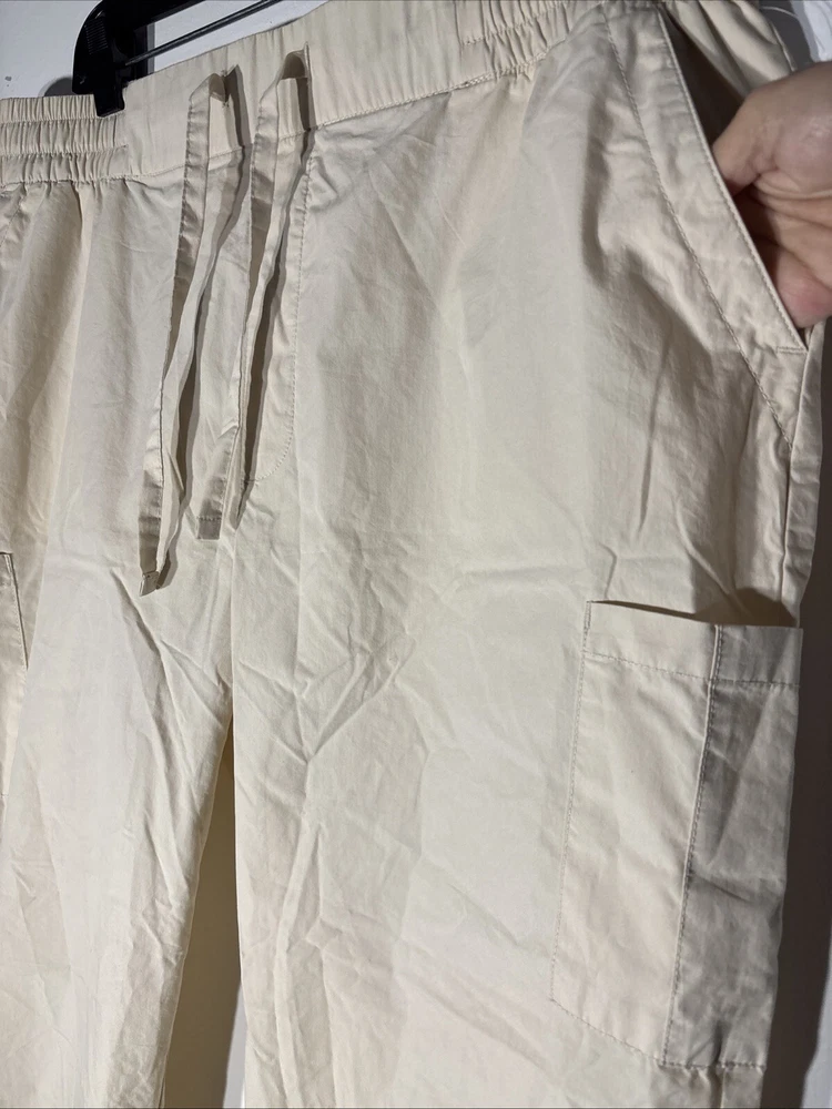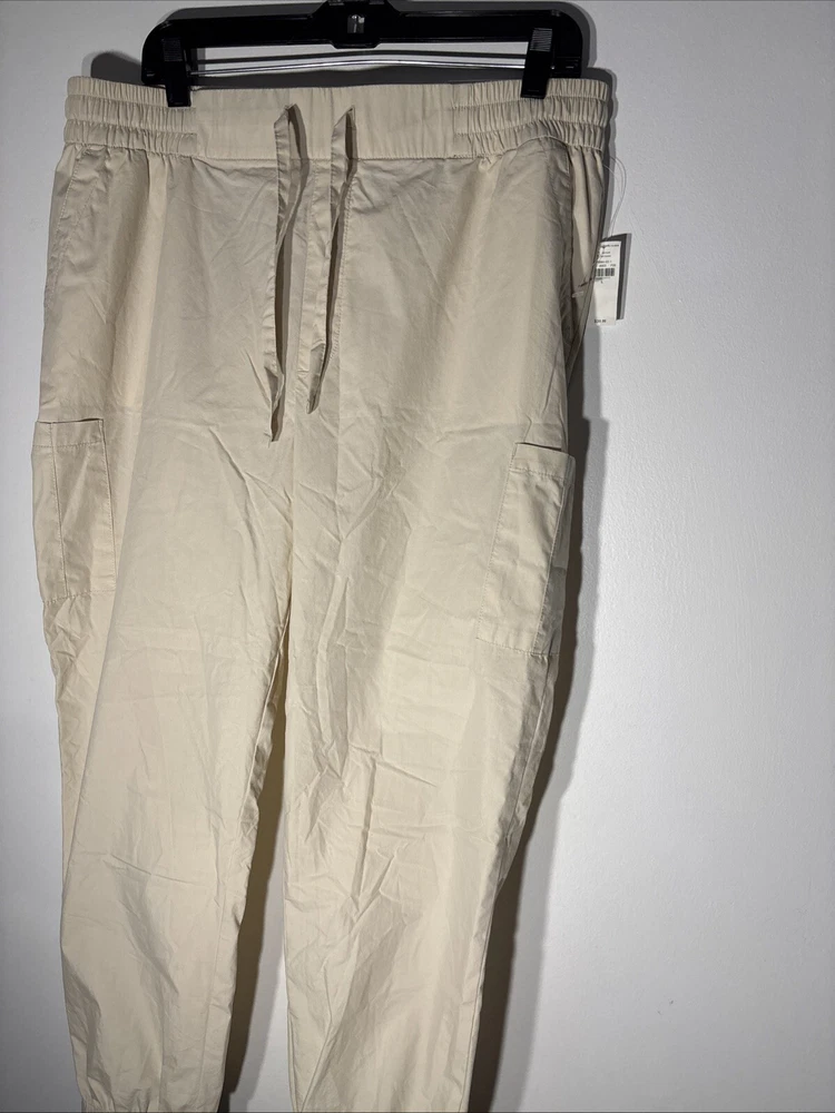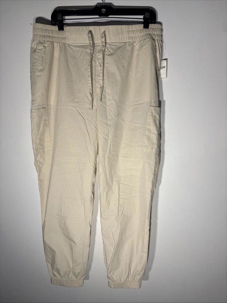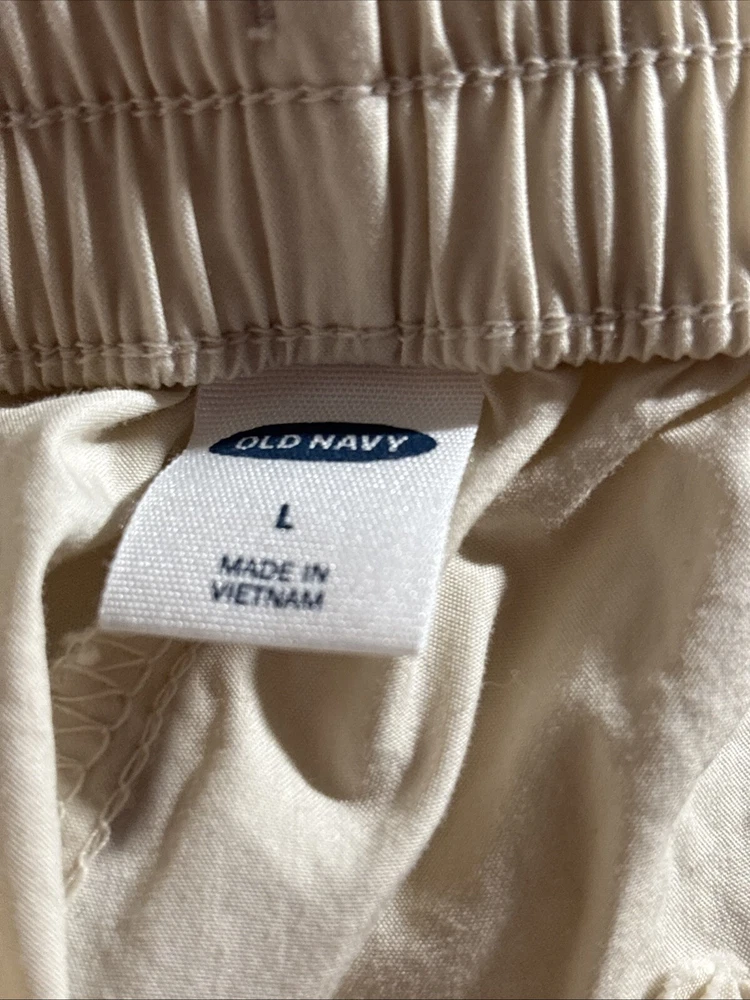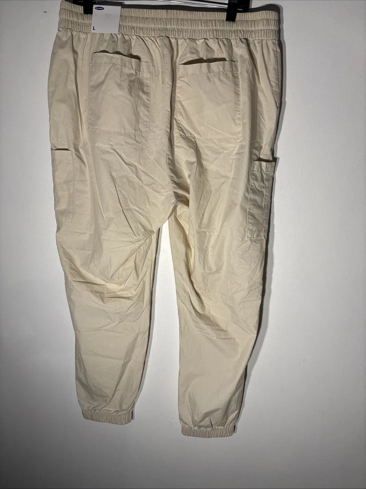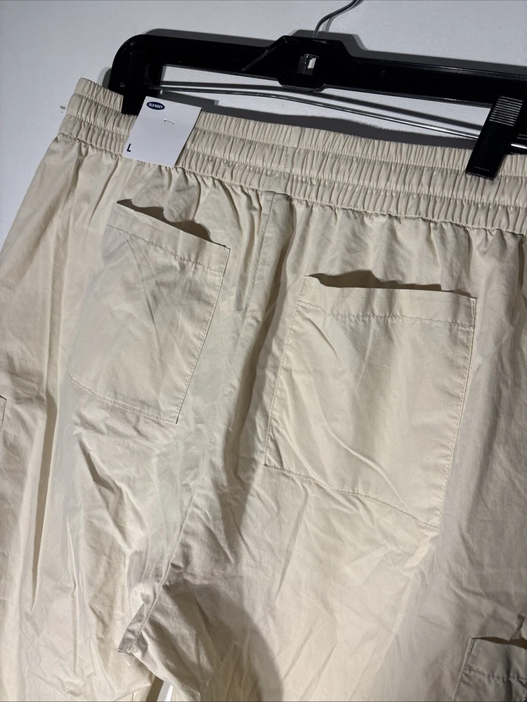 Old Navy Pants Women L Beige Blend Cotton Elastic Waist Ankle Cargo Joggers