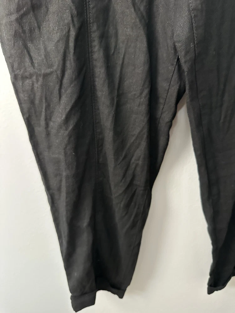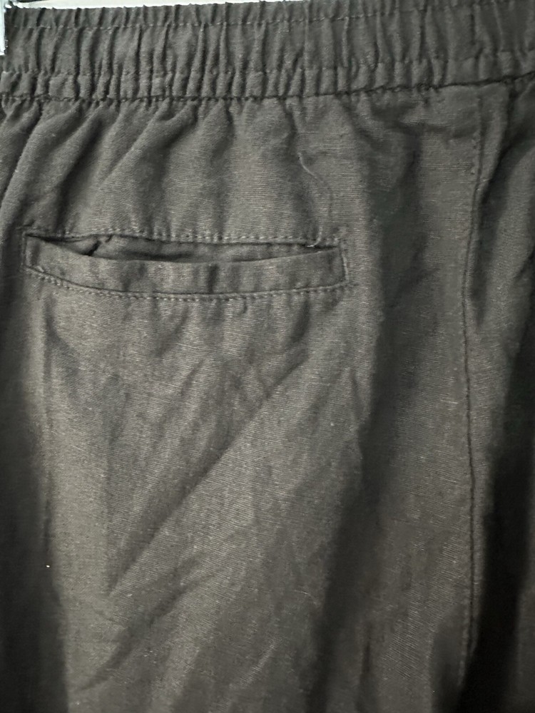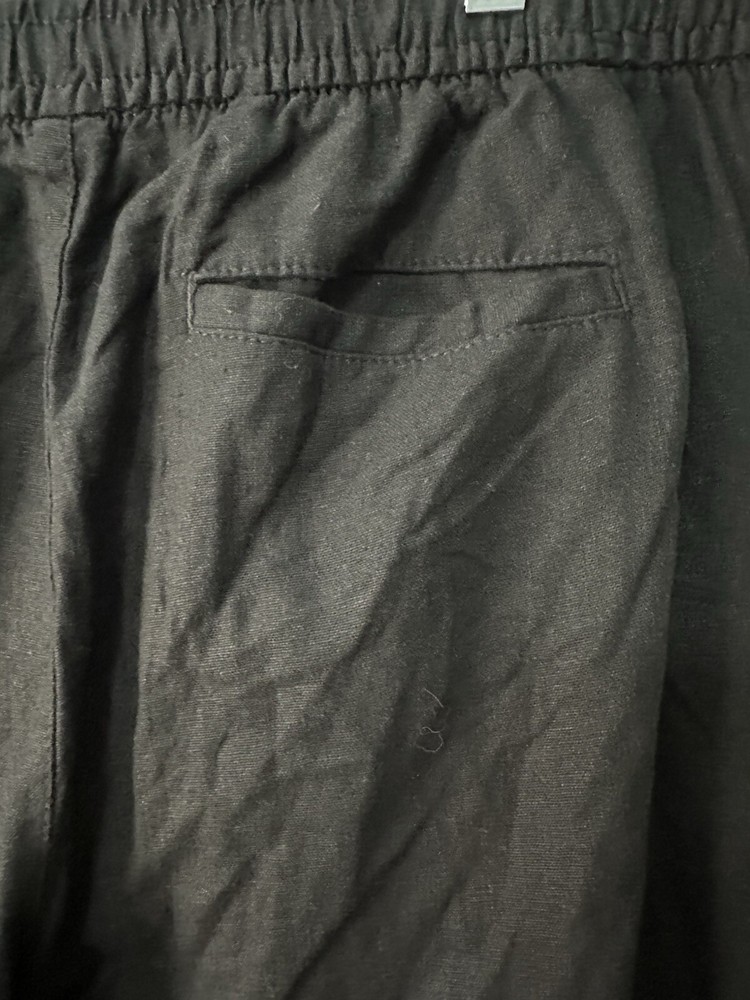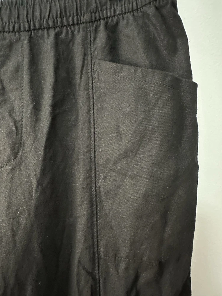 Crafted for versatility and comfort, these Old Navy pants are a staple for any wardrobe. The high-waisted design, combined with a tapered leg, creates a flattering silhouette that transitions effortlessly from daytime casual to evening cocktail attire. The breathable linen-rayon blend ensures all-day comfort, while the easy-care fabric allows for a hassle-free machine wash. Featuring a drawstring closure for a customizable fit, these pants also come equipped with convenient pockets. The black color offers a timeless appeal, making them a perfect match for a range of tops and shoes. Whether you're out for a casual stroll or headed to a party, these cropped pants are an ideal choice for any occasion.