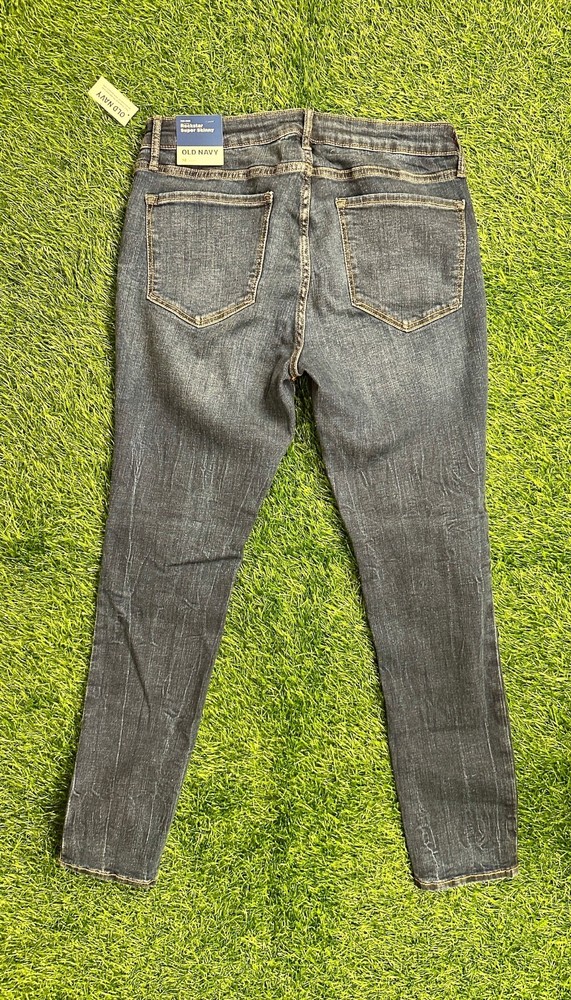 These Old Navy Rockstar Super Skinny Mid-Rise Dark Wash Jeans in size 12 feature a solid denim fabric with a dark wash. They have a zip and button closure, a 5-pocket design, and a slimming, stretch fit. Made of a blend of polyester, spandex, and cotton, they are machine washable. The jeans have a 33-inch waist size, a 28-inch inseam, and a mid-rise of 8.5-10.5 inches. Perfect for a rock, school, college, or city-themed look.