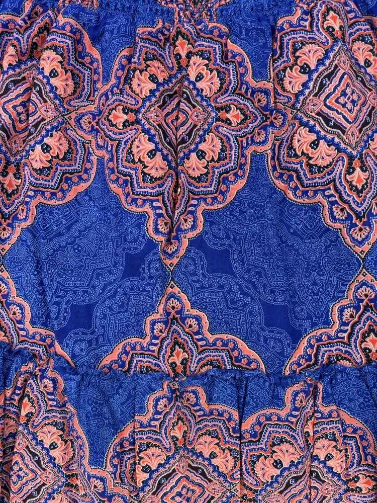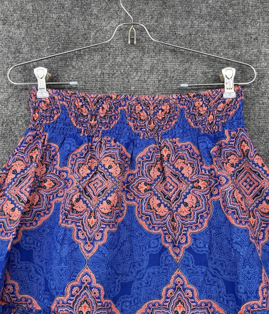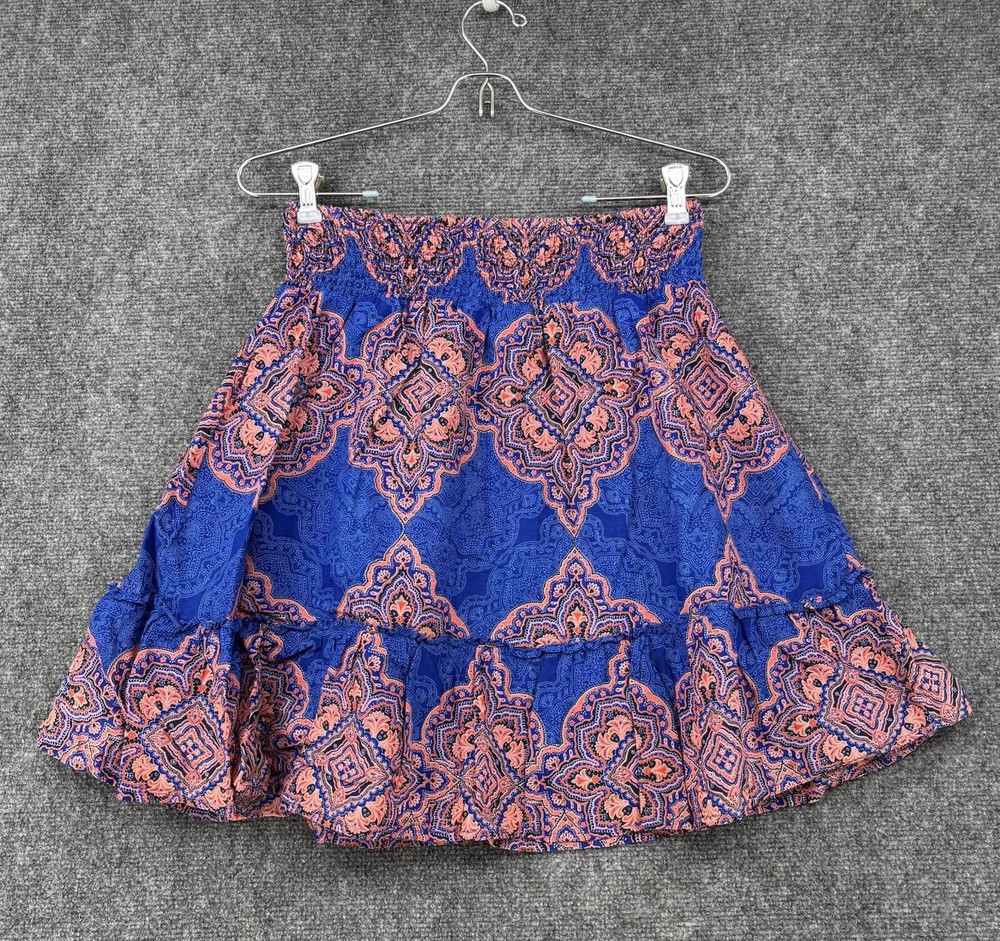 This Old Navy Women's S Marakesh Design Elastic Waist Lined Blue & Orange Short Skirt is perfect for any occasion. The skirt is made of lightweight cotton material and features a pleated and ruffle accents. The elastic waistband ensures a comfortable and secure fit, while the pull-on closure makes it easy to wear. The skirt is machine washable and perfect for summer, fall, and spring seasons. The multicolor design with blue and orange hues adds a touch of bohemian, tropical, and retro style, making it perfect for festivals, beach parties, and casual outings. The skirt is lined and has a flare style, giving it a preppy and snake-themed look. Items are PREOWNED, NWT or NWOT (NEW WITH or WITHOUT TAGS). Items are checked for flaws and if applicable are pictured. Items are well cared for and stored indoors. Please review and compare the measurements we provide in the photos. Measurements are approximate and in flat inches. Please keep in mind many items are preowned and may not reflect the manufacturer's tag/sizing and may have shrunken. We ship quickly. 30 day returns available. Please contact with any questions. Thank you for your business and remember to save our store info as we add new items often. God Bless Mdubs Clothing