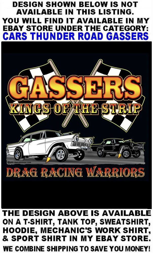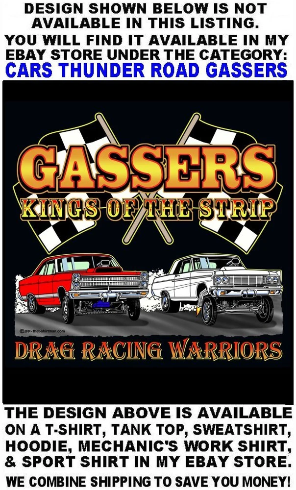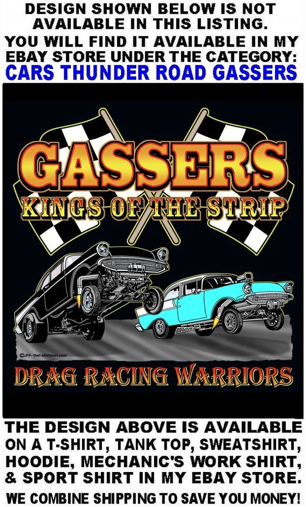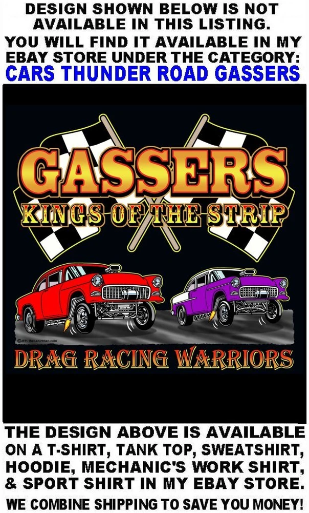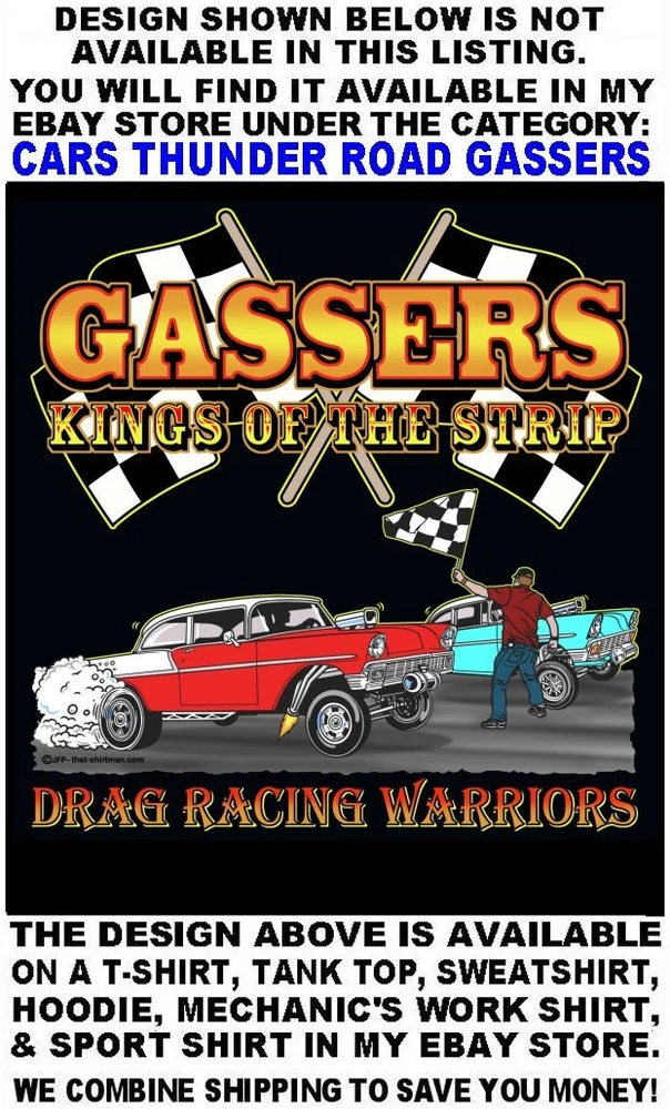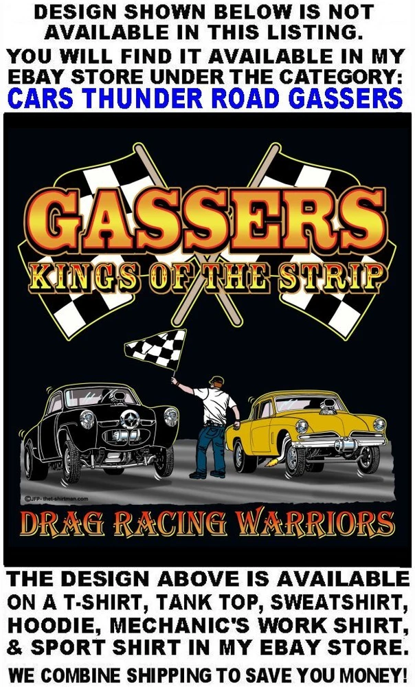 We only use name brand, high quality, soft hand 65% / 35% poly cotton blend poplin permanent press shirts. Great for casual dress, or as mechanic's work shirts. Or better yet, you'll be the hit at any car show, swap meet, or racetrack with one of our specialty custom shirts! These designs are our own copyrighted designs and not available anywhere else. Please use the size chart that is shown in the Ebay pictures for this listing. Colors include Charcoal, Black, Navy, and Maroon in most sizes from Small to 6XL Our shirts are not pre-printed then simply pulled off a shelf. Each shirt is custom printed per your order, by us, right here in the USA. We print and ship within 1 working day. The design for this listing offers 30 different variations. It is a unique shirt you the customer design yourself by choosing this style, the size, and the color. Double check to be sure and order the exact size, color, and print combination you want. IMPORTANT: use the size chart. Buying more than one shirt? I will combine the shipping to save you money. Be sure to click the "Save this seller" button. For more cool short & long sleeve t-shirts, tank tops, sweatshirts, hoodies, zip hoodies, casual mechanics work shirts and more, click on: "Sellers other items". Then click the "category button" to choose the type of designs you like on the style shirt you want. If you have any questions, feel free to ask.