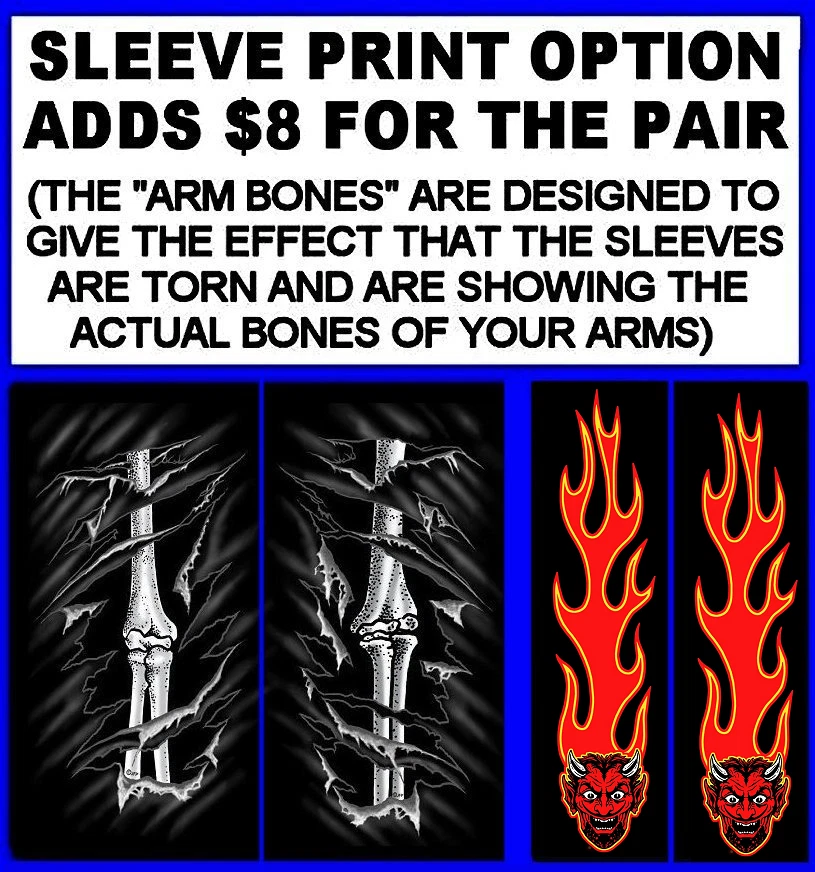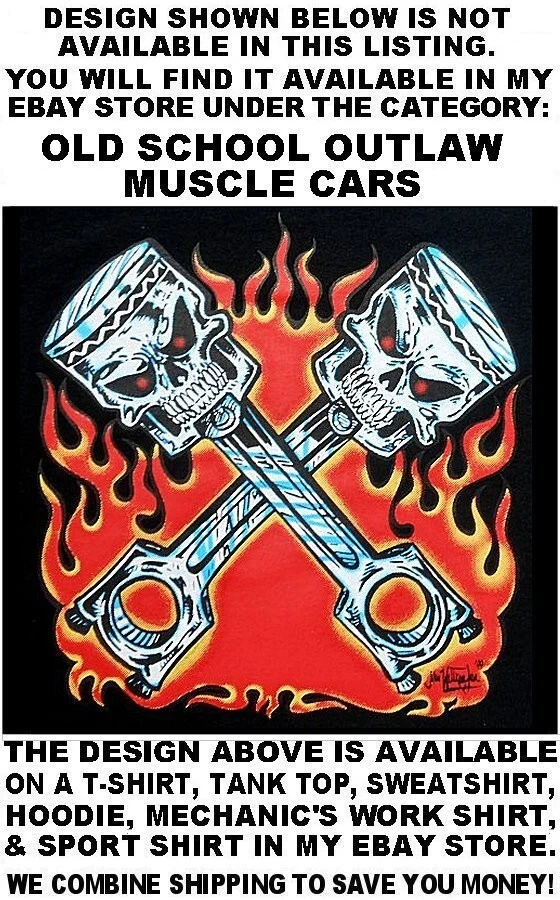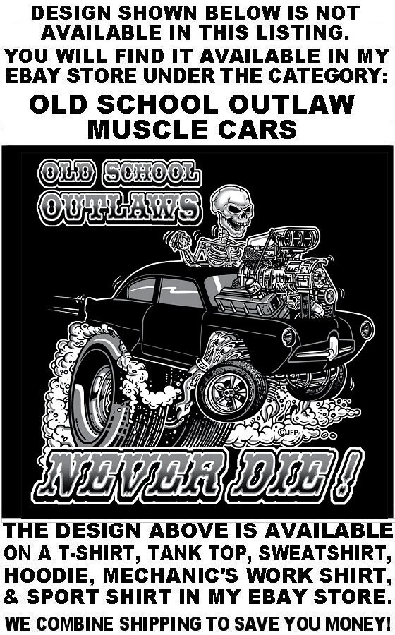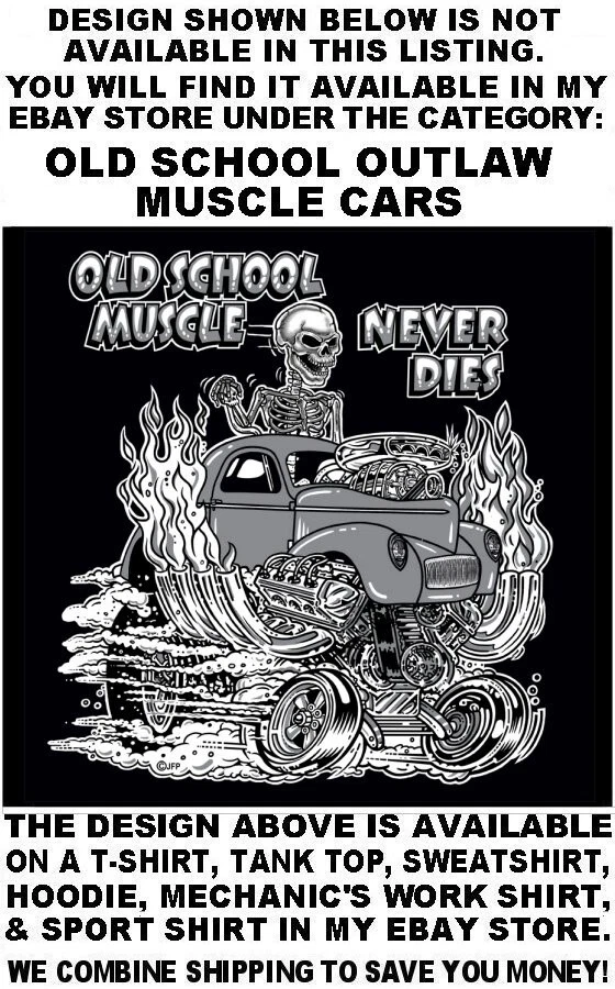 We use high quality Gildan 50/50 sweatshirt hoodies and print them ourselves right here in the USA. Please use the size chart that is shown in the Ebay pictures for this listing. It is quite accurate, and it will help you order the correct size for your purchase. No one offers you a bigger selection of options than we do! Each hoodie sweatshirt is custom printed per your order, it is not simply pulled off a shelf. This listing offers 240 different variations. It is a unique customized hoodie sweatshirt that you, as the customer, design yourself by starting with choosing the size and the color, and then on to other options including whether it is a single print with the full size design printed on the back only, or double print with the full size design on the back and the logo size design as shown in the listing printed on the front over the heart. Also, you may choose to add one of the two different pairs of sleeve print designs offered for your sweatshirt. For the final over the top option, you can have Skulls printed on the hood so when you're wearing the hood up it looks like the hood is ragged and torn letting you see the skull of the person wearing it! Buying more than one shirt? Don't worry, I will combine the shipping to save you money. Be sure to click the "Save this seller" button. For more cool short & long sleeve t-shirts, tank tops, sweatshirts, hoodies, zip hoodies, casual mechanics work shirts and more, click on: "Sellers other items". Then click the "category button" to choose the type of designs you like. If you have any questions, feel free to ask. Remember, our single print pullover hoodies and zip hoodie sweatshirts feature the full-size design printed on the back only. Our double print pullover hoodies and zip hoodie sweatshirts all feature the full-size design printed on the back, and the smaller logo size design shown, printed on the front over the heart. A double print DOES NOT mean the full size design is printed on the front and the back. (If for any reason Gildan becomes unavailable, we will maintain our high quality standard by using Hanes, Fruit of the Loom or an equivalent in sizing and fabric weight.)