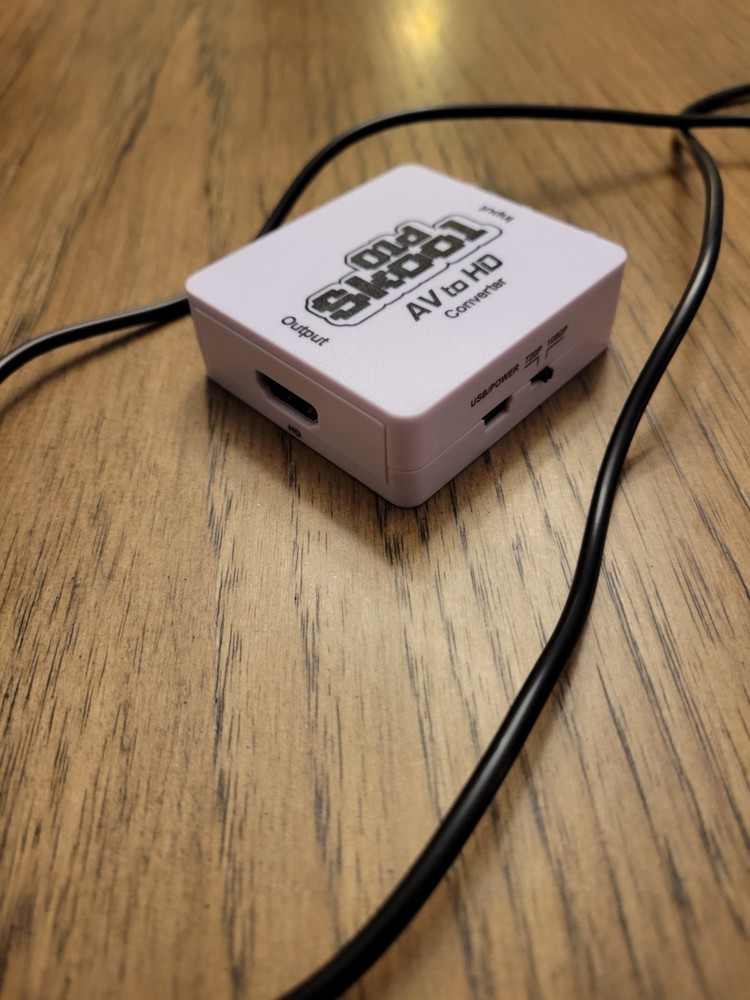 Old Skool HDMI to AV / RCA Converter Includes USB Power Cord Unit is in excellent condition and has been tested. I bought this several months ago and upgraded to a Prism HDMI converter and has only been used a handful of times. Feel free to reach out with further questions.