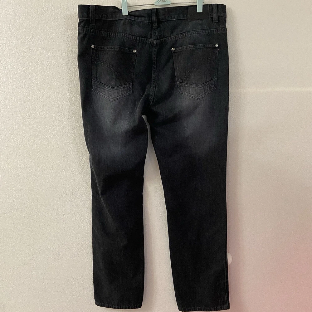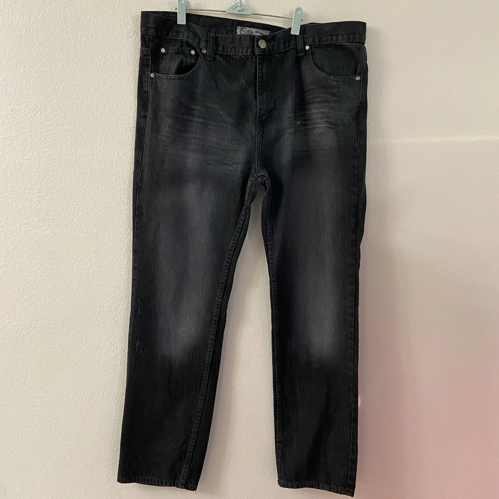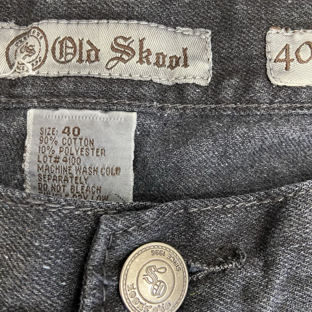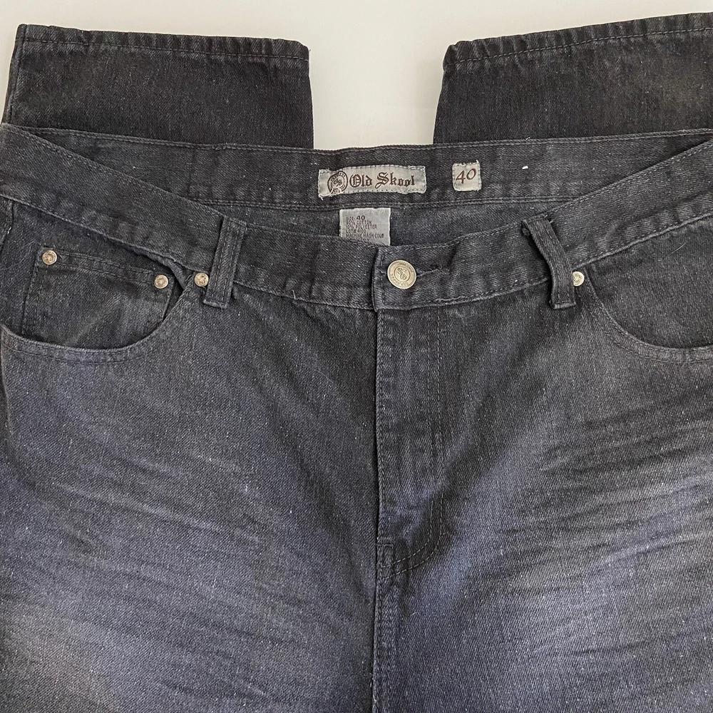 Old Skool Mens Jeans Black Denim Size 40x32 Y2K Straight Leg Baggy Grunge Skater