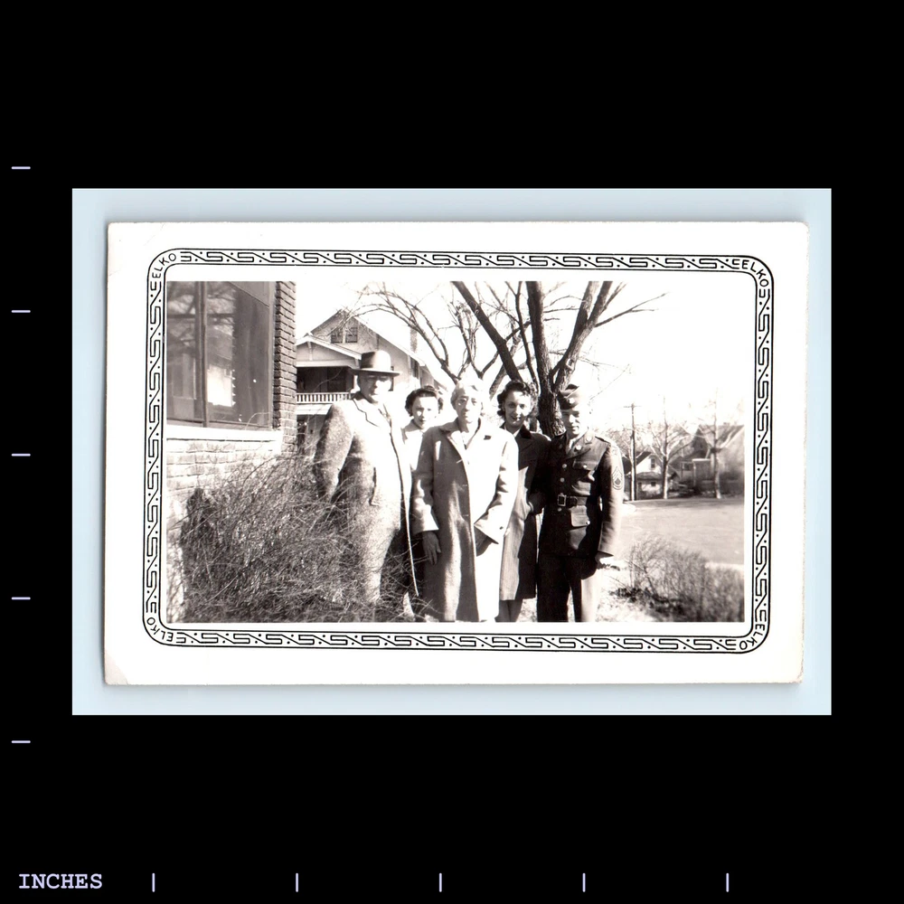 Old Vintage Photo MEN AND WOMEN OUTSIDE HOUSE ARMY SOLDIER UNIFORM
