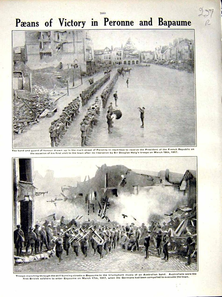 Original Old Vintage Print 1917 World War German Siers Bapaume Irles British