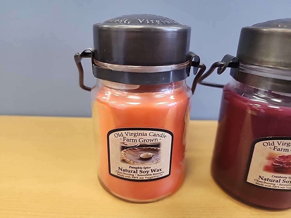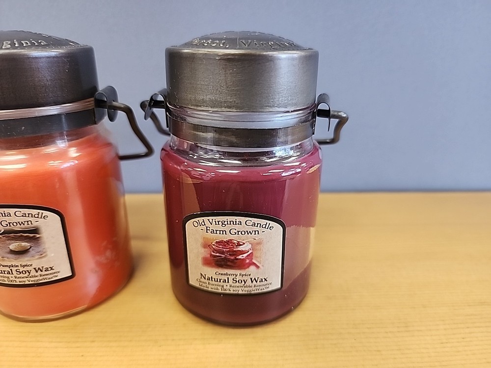 Shape:RoundBrand:Old Virginia Candle CoType:Jar/Container CandleCountry/Region of Manufacture:United StatesScent:Assorted/MixedSize:SmallNumber in Pack:2Features:Scented, Single Wick, Renewable resourceMaterial:Soy Wax
