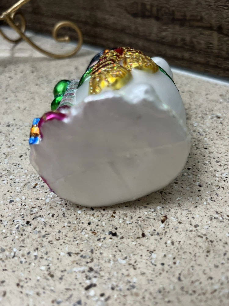 Add a whimsical touch to your holiday decor with the Old World Christmas 5" Candy Cane Snowman ornament. Expertly crafted using traditional hand-blown glass techniques, this charming piece showcases a vibrant multicolored design that brings a festive spirit to any Christmas tree or mantel. This medium-sized, hanging ornament is a part of Old World Christmas's esteemed collection, renowned for its unique art glass productions. Celebrate the season with this delightful snowman, a perfect gift for your family that captures the essence of Christmas joy and merriment.