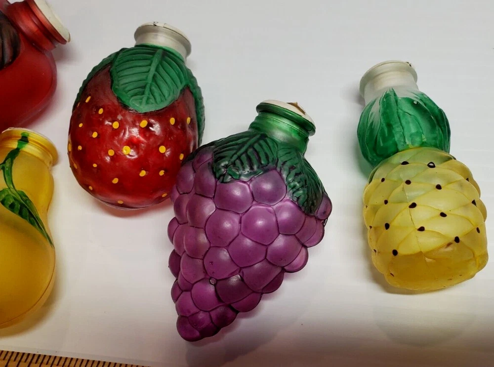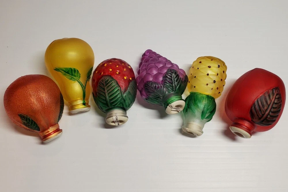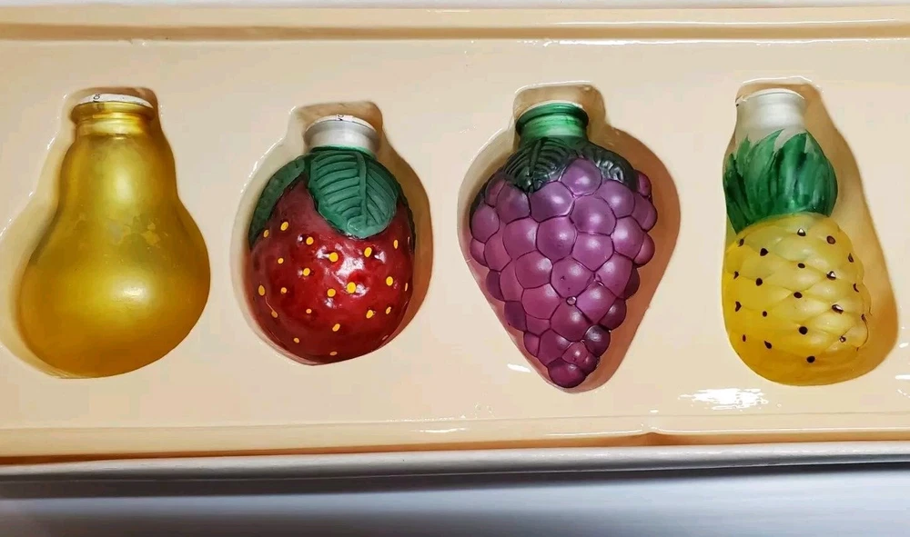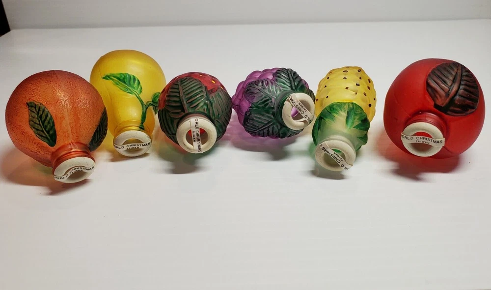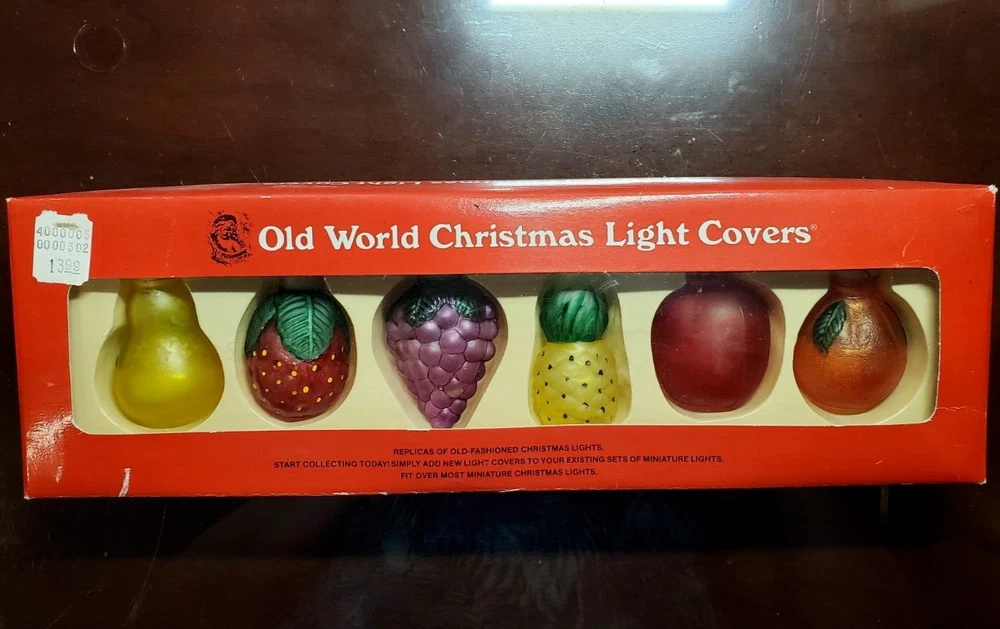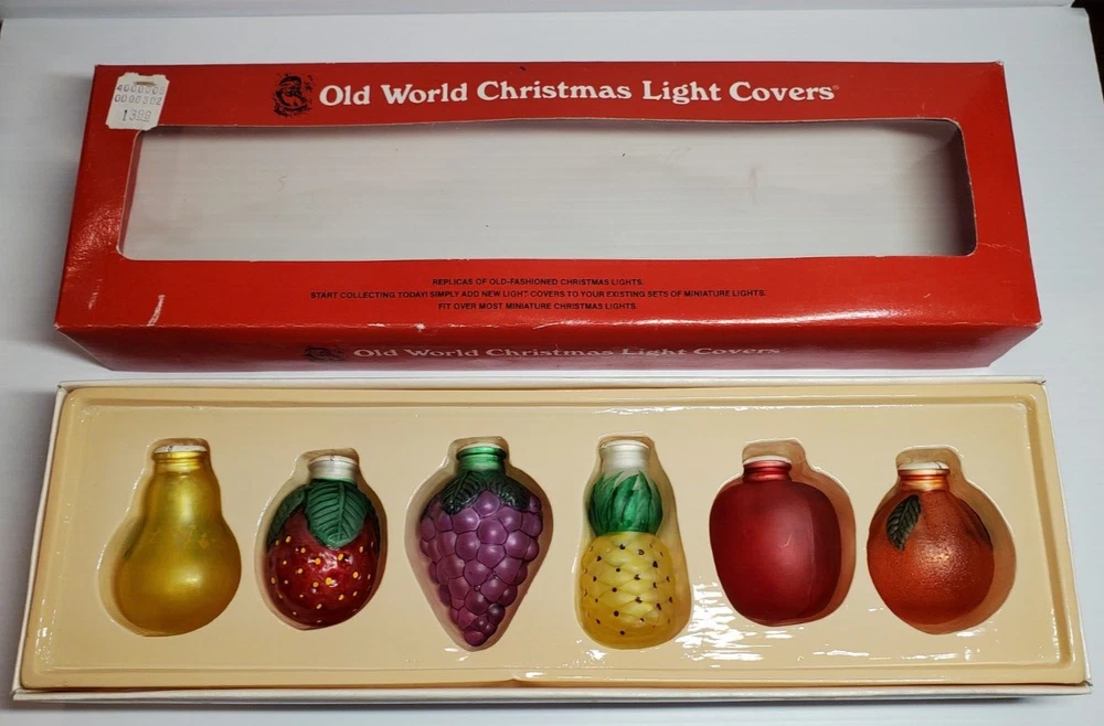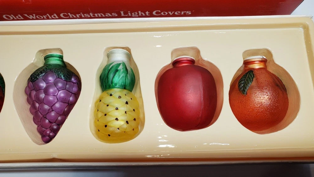 Old World Christmas Light Bulb Covers Glass 6 PC Box Set Fruit Grapes Apple Pear