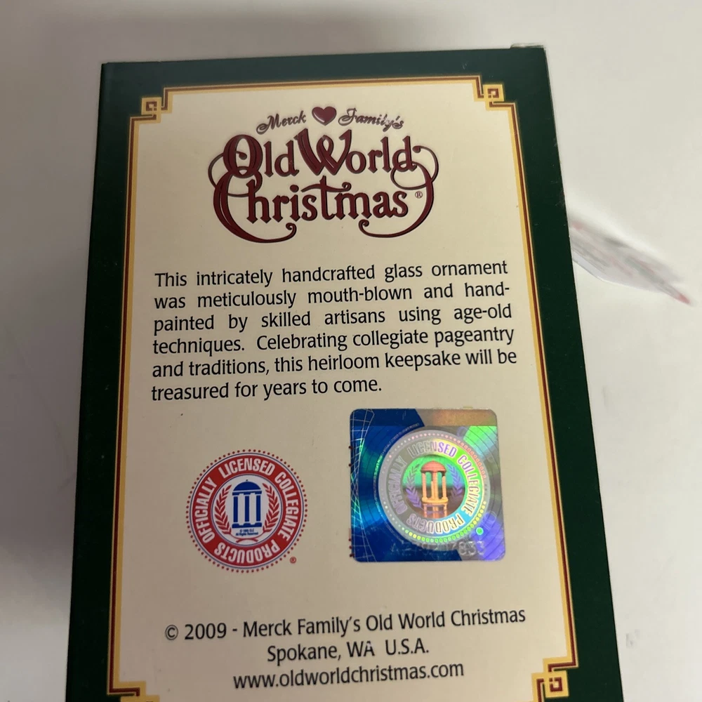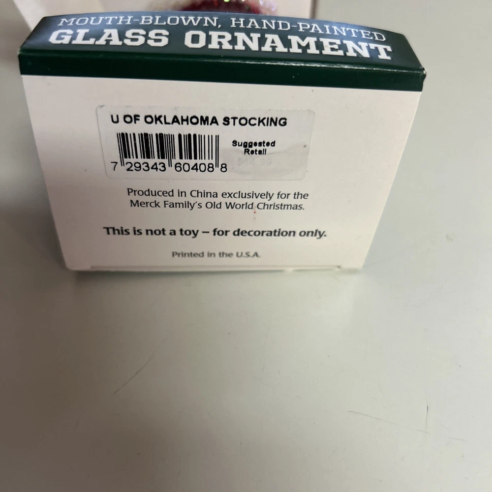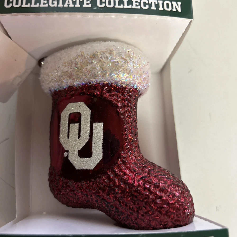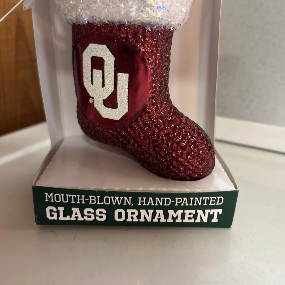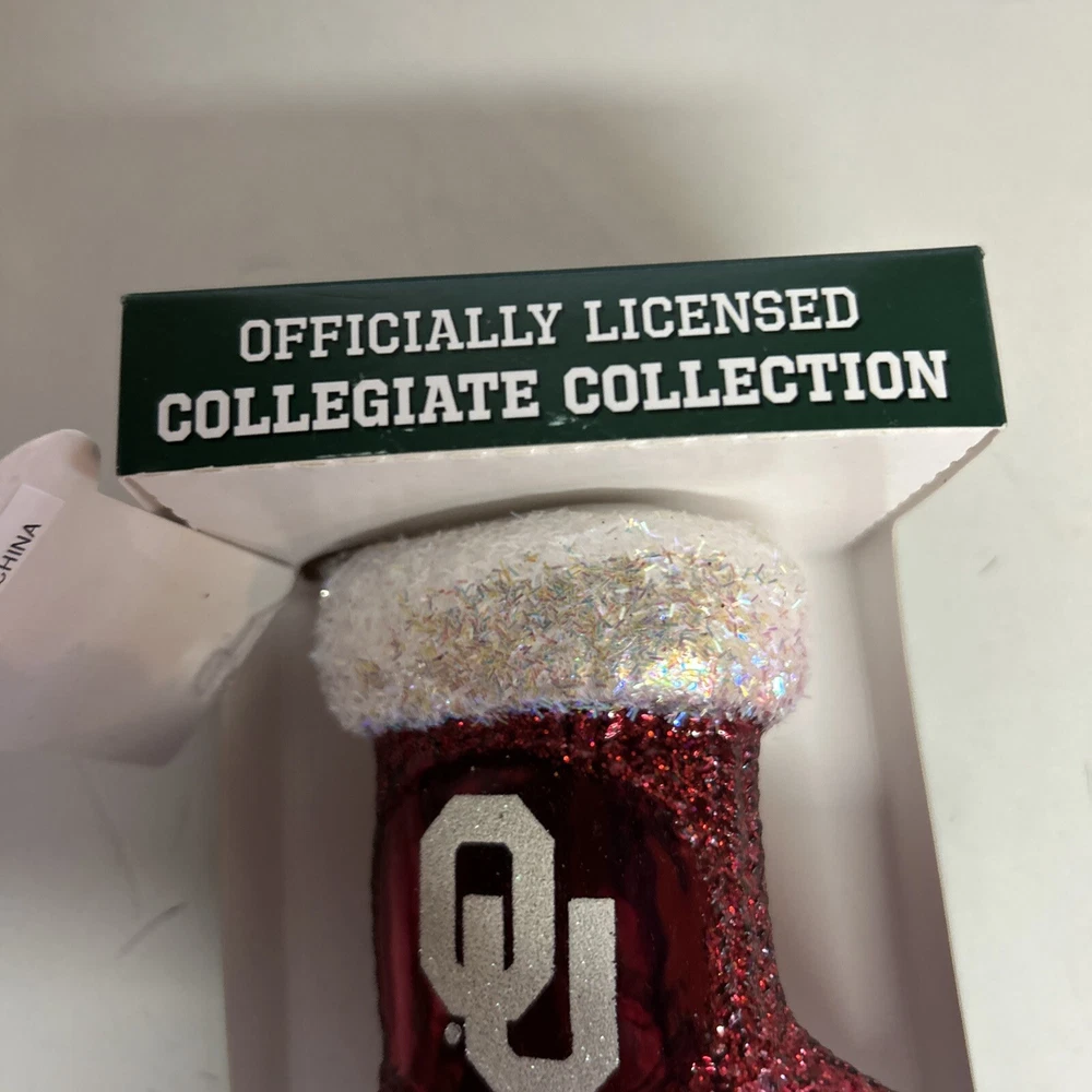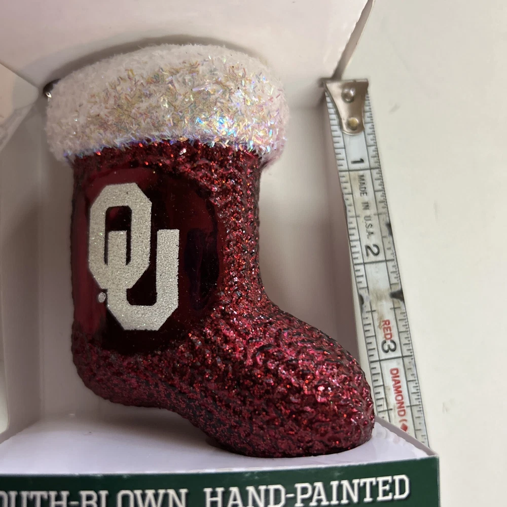 Celebrate the holiday season with a touch of university spirit with the Old World Christmas Oklahoma University Ornament. This charming stocking-shaped decoration is mouth-blown and hand-painted, showcasing the vibrant multicolor design that captures the essence of Oklahoma University. Perfect for hanging on your Christmas tree or displaying as part of a festive collection, it adds a personal touch to your celebrations. Crafted with attention to detail, this small-sized ornament is a great gift for alumni or a special addition to your own ornament collection. The unique combination of decorative features and the nostalgic Old World Christmas Sports theme make it an unforgettable piece that commemorates the holiday season and your love for the university. New in box with tags