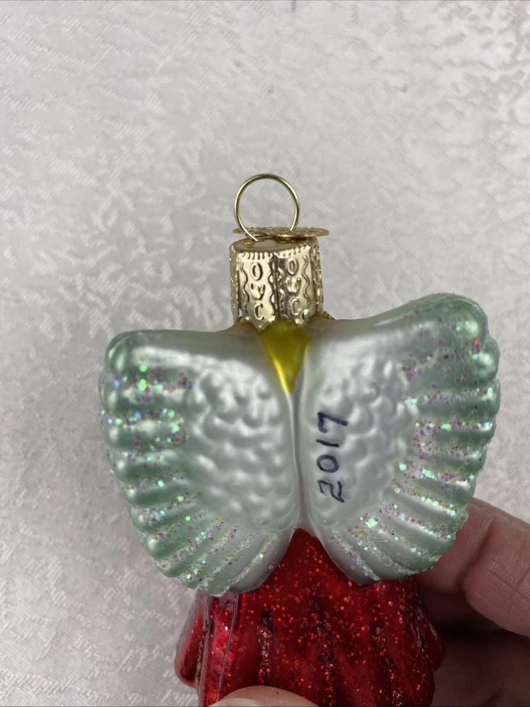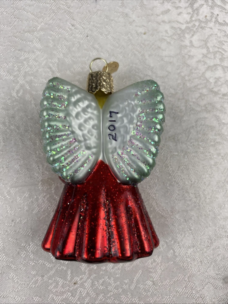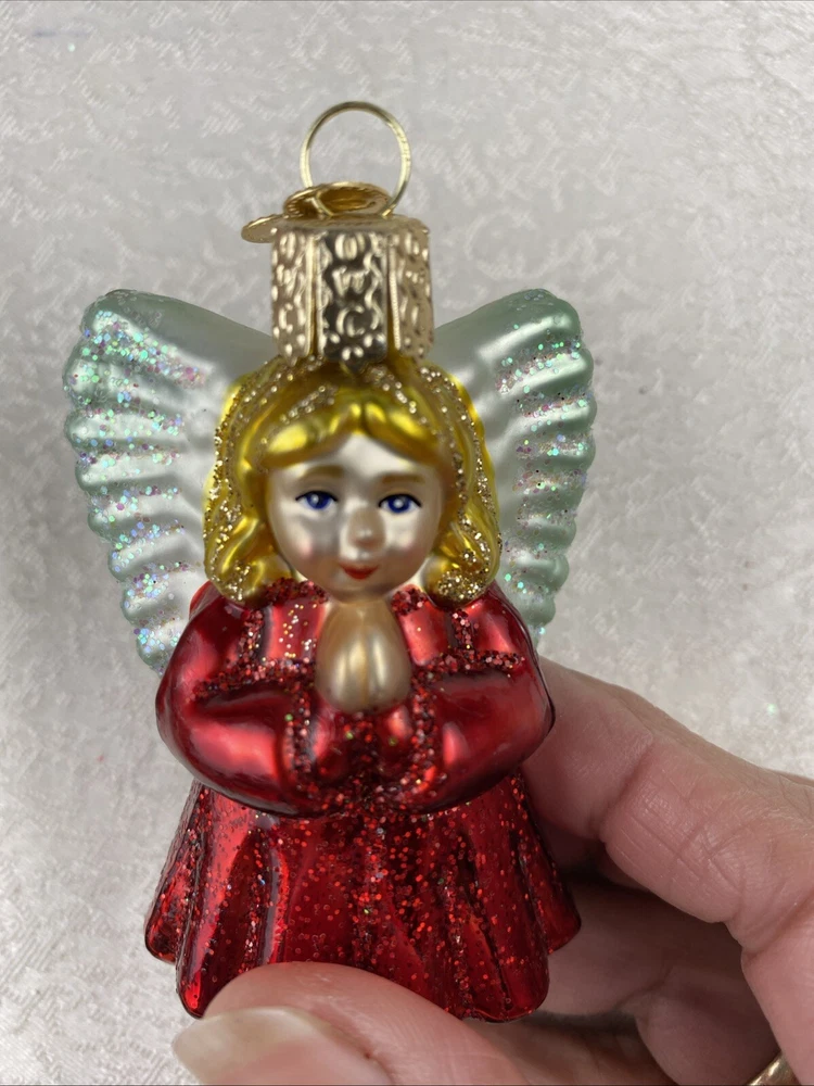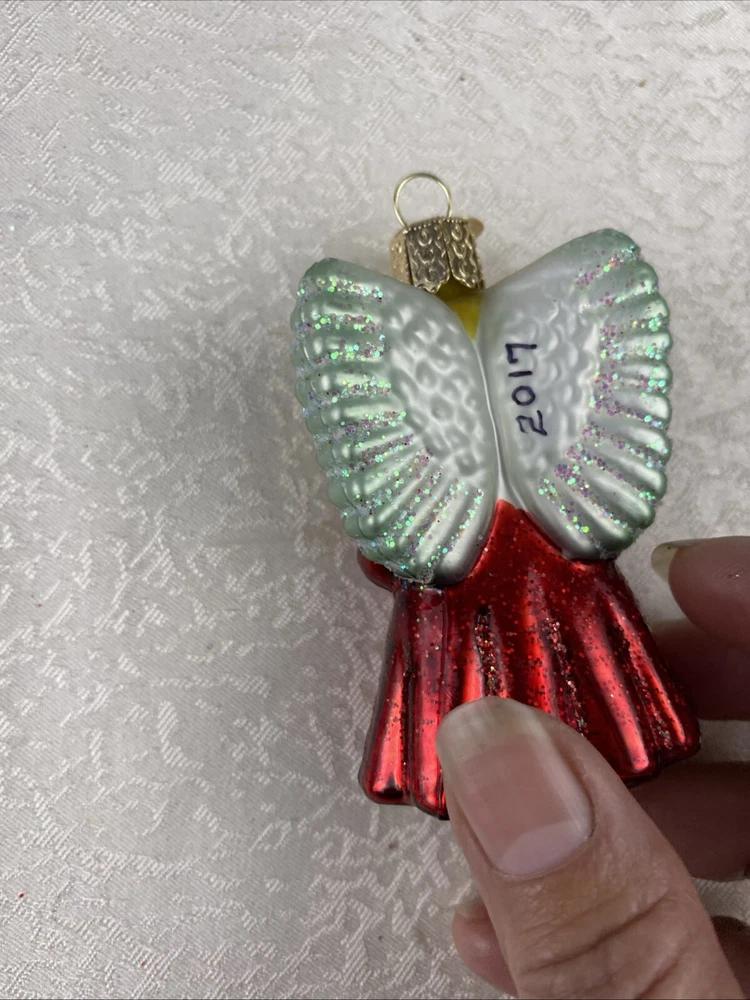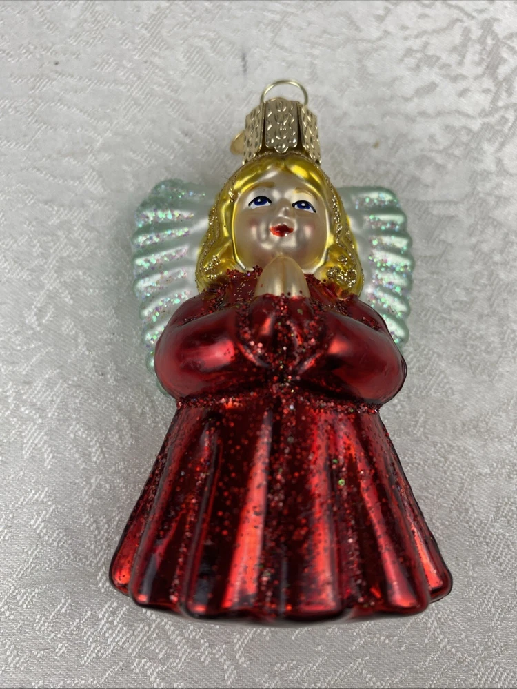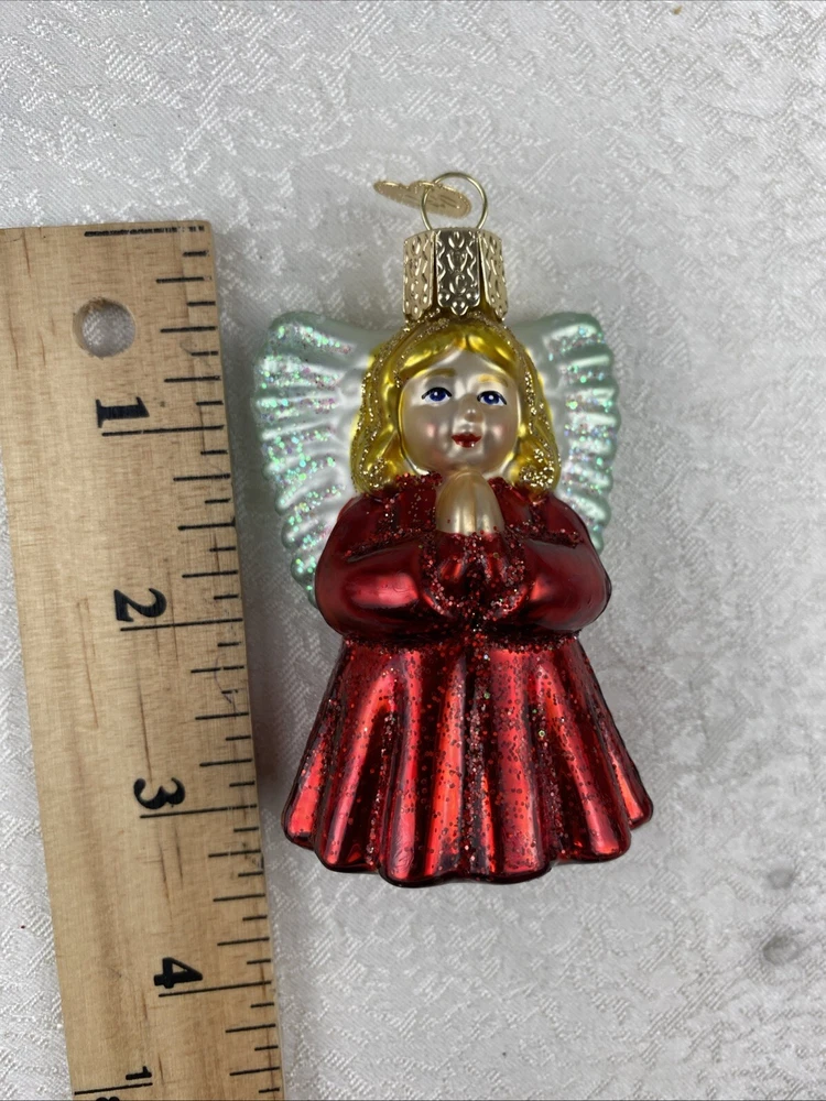 Girl Praying Angel With Wings Red Gown Glass Christmas Ornament Pre-Owned Review Photos For Details And Measurements It Has Written Date On His Back