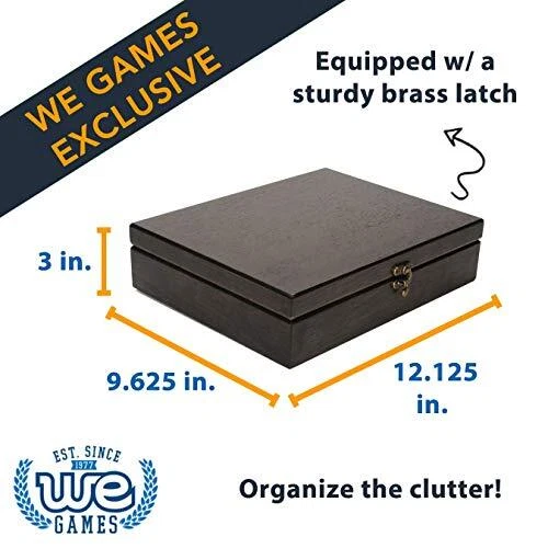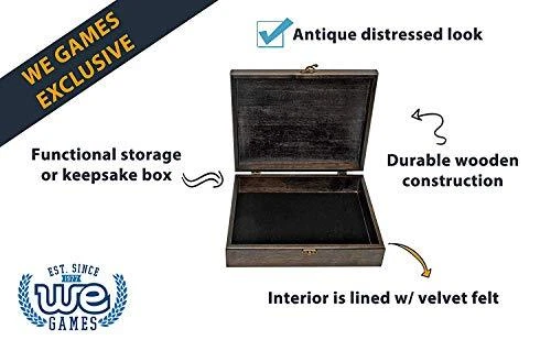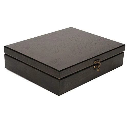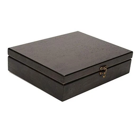 Return Policy Fast Delivery Trusted seller Old World Wooden Treasure Box with Brass Latch (Black Stained) Product Description GET ORGANIZED: This sturdy, skillfully crafted wooden treasure box is exactly what you need to get your space organized. The box has a unique brass latch to keep its contents safe. The inside and bottom of the box is lined with the velvet felt. Outside measurements are 12.125 x 9.625 x 3 inches. Inside measurements are 11.25 x 8.75 x 1.75 inches with the inside lid being 11.25 x 8.75 x .75 inches. ANTIQUE DISTRESSED LOOK: Intentionally distressed to give it an Old World look. The box may be less than perfect to give it a weatd look or to give it an appearance of age and wear. Corners and edges may appear slightly lighter or sanded down as desired to appear worn. The box is stained by hand and the artisan attempts a rustic, attractive, one-of-a-kind appearance or vintage look. MEANINGFUL: This box is called a treasure box because it is just that. Keep all your most important keepsakes, photos, letters from loved ones, favorite chess pieces, small heirlooms, jewelry safe in this box. HOME DÉCOR: Versatility is a big component of this box. Not only is it a functional storage and keepsake box, it is also adds a décor value to any space. It can be a sophisticated coffee table box that can store coasters and television remote controls. It can make a hectic office desk look more organized and elegant. Whatever it may be used for, it will look wonderful doing so. : Making the world’s best traditional games since 1977. Our games are crafted with high quality sustainable materials with attention to fine details. We love bringing people together with our classic board games, and we know the joy of the game will be passed down to the next generation. We also donate time and resources to the Toy Foundation to help children in need who are facing many of life’s most difficult challenges. Shipping Returns Payment Shipping Shipping is FREE to all addresses other than APO/PO boxes in the lower 48 states. All our stock ships from US-based warehouses. Shipped via USPS or UPS (depending on location and package weight) Unless stated otherwise, all orders will ship within 24-72 hours of your payment being processed. Check our feedback to see the great reviews of FAST shipping we offer. Returns Seller does not accept returns Payment We currently accept payment via eBay managed payments only. Once payment is cleared, we will dispatch your shipment within 1-3 business days. Please refer to the "Shipping" tab for more information regarding shipping speed to your destination.