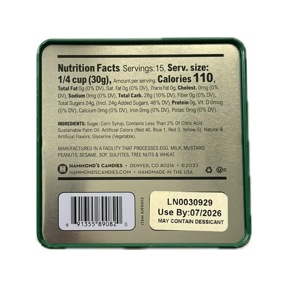 The familiar candy dish at Grandmother's house is sure to come to mind when you see these sparkling, colorful treats. And no one will be able to walk past your candy dish without popping at least one into their mouth. Made by a 90-year-old candy company that still uses original recipes and hand-pulls hard candy to the perfect shine. The "art candy" alone is practically a forgotten craft: each flavor contains a miniature picture in the center. A generous amount of over 20 different shapes, colors and flavors. In a charming 16 oz. metal tin. Contains ribbon candy, art candy, striped straw candy and more. USA made. Visit Our Store Contact Us Old-Fashioned Christmas Candy - 16 oz Tin The familiar candy dish at Grandmother's house is sure to come to mind when you see these sparkling, colorful treats. And no one will be able to walk past your candy dish without popping at least one into their mouth. Made by a 90-year-old candy company that still uses original recipes and hand-pulls hard candy to the perfect shine. The "art candy" alone is practically a forgotten craft: each flavor contains a miniature picture in the center. A generous amount of over 20 different shapes, colors and flavors In a charming 16 oz. metal tin Contains ribbon candy, art candy, striped straw candy and more USA made