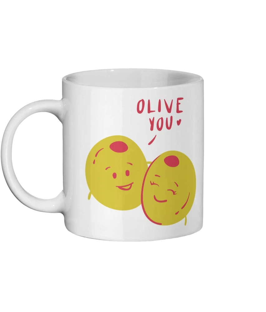 Olive You Mug I Love You Gift Gift For Partner Gift For Wife Gift For Husband Gift For Boyfriend Gift For Girlfriend Gift For Fiance Product Details.. This high quality 11oz. ceramic white mug has a premium hard coat that provides crisp and vibrant color reproduction sure to last for years. Perfect for all hot & cold beverages. The highest quality printing possible is used. It will never fade no matter how many times you wash it. Material: 100% Ceramic. Print both sides. Dishwasher and Microwave Safe. High Gloss + Premium White Finish. Printed in the U.S.A. Personalized & Custom. We support personalized and custom mug to add custom, when placing an order, you can add notes to the "order note" in shipping address section. Also you can contact us directly via message. Shipping Info. Ready to ship in 1 to 2 business days, All products are made-to-order and proudly printed in the United States. Shipped by USPS and DHL, You will receive your order in 5-7 days. Replace & Refund. All products are defective during shipping broken, chipped will be replaced free of charge. You are not satisfied with the product, we will refund 100% money to you. If any other issues arise, please do not hesitate to message, we would be more than happy to assist you.