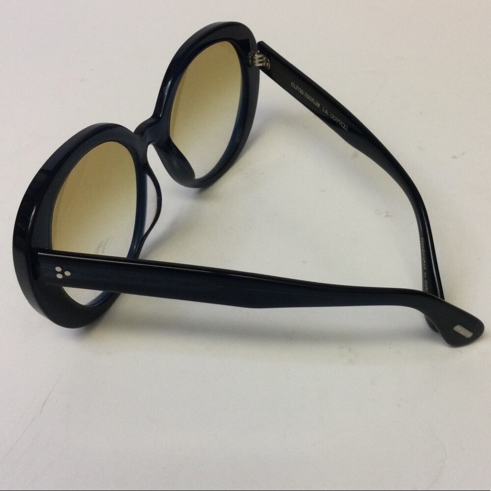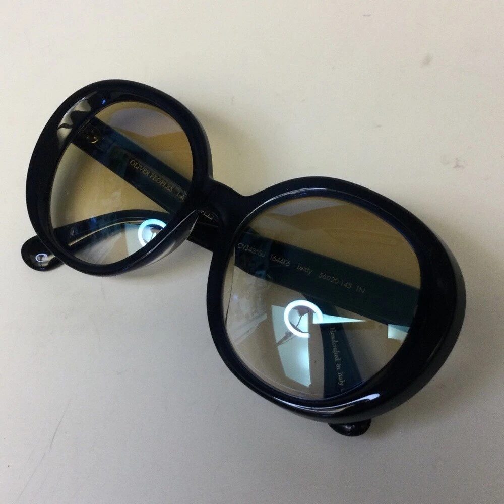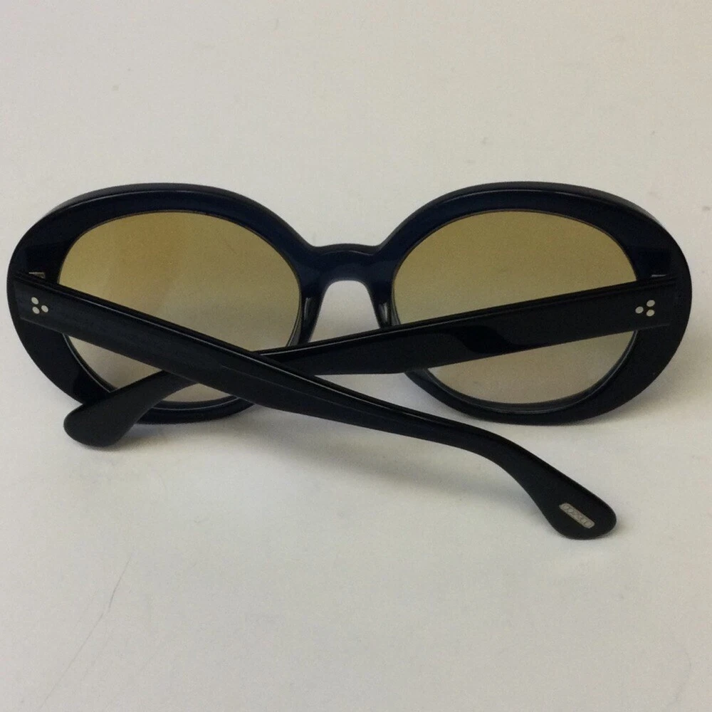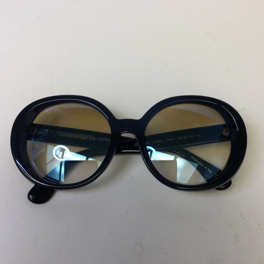 OLIVER PEOPLES LEIDY SUNGLASSES OV5426SU 1644K6 56-20-145 EUC Excellent excellent condition Navy (so dark it looks black) with yellow gradient lenses The Oliver Peoples // Leidy (OV5426SU) is inspired by the 1970's Hollywood Glam. An ultra feminine frame, the rounded lens shape is oversized and offers and extreme look. The acetate is unique in the way that is constructed - from the side view the acetate is thick highlighting the rich, custom colors and from the front, a reverse bevel is seen giving extra dimension to the style. Handmade in Italy.