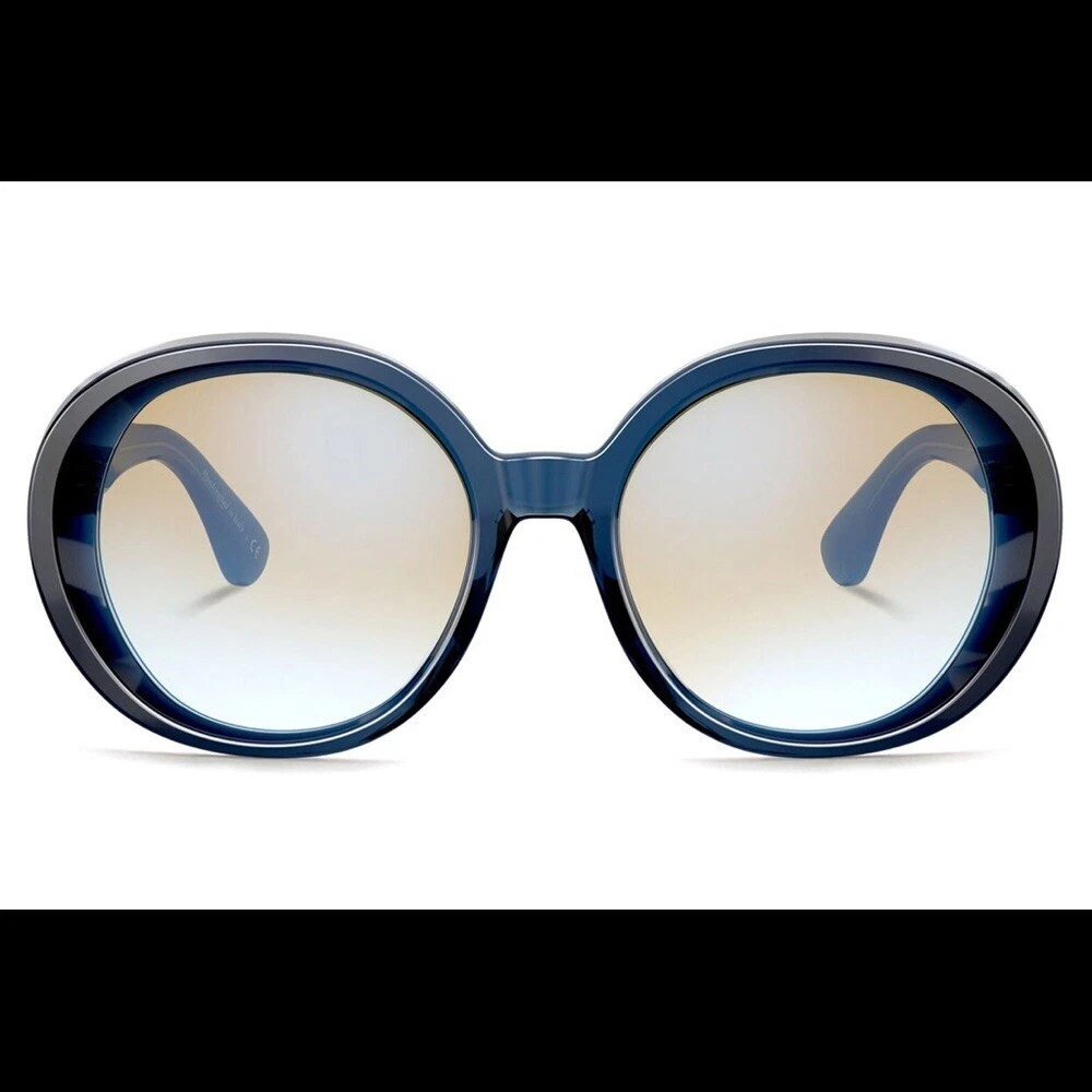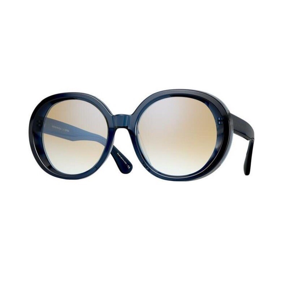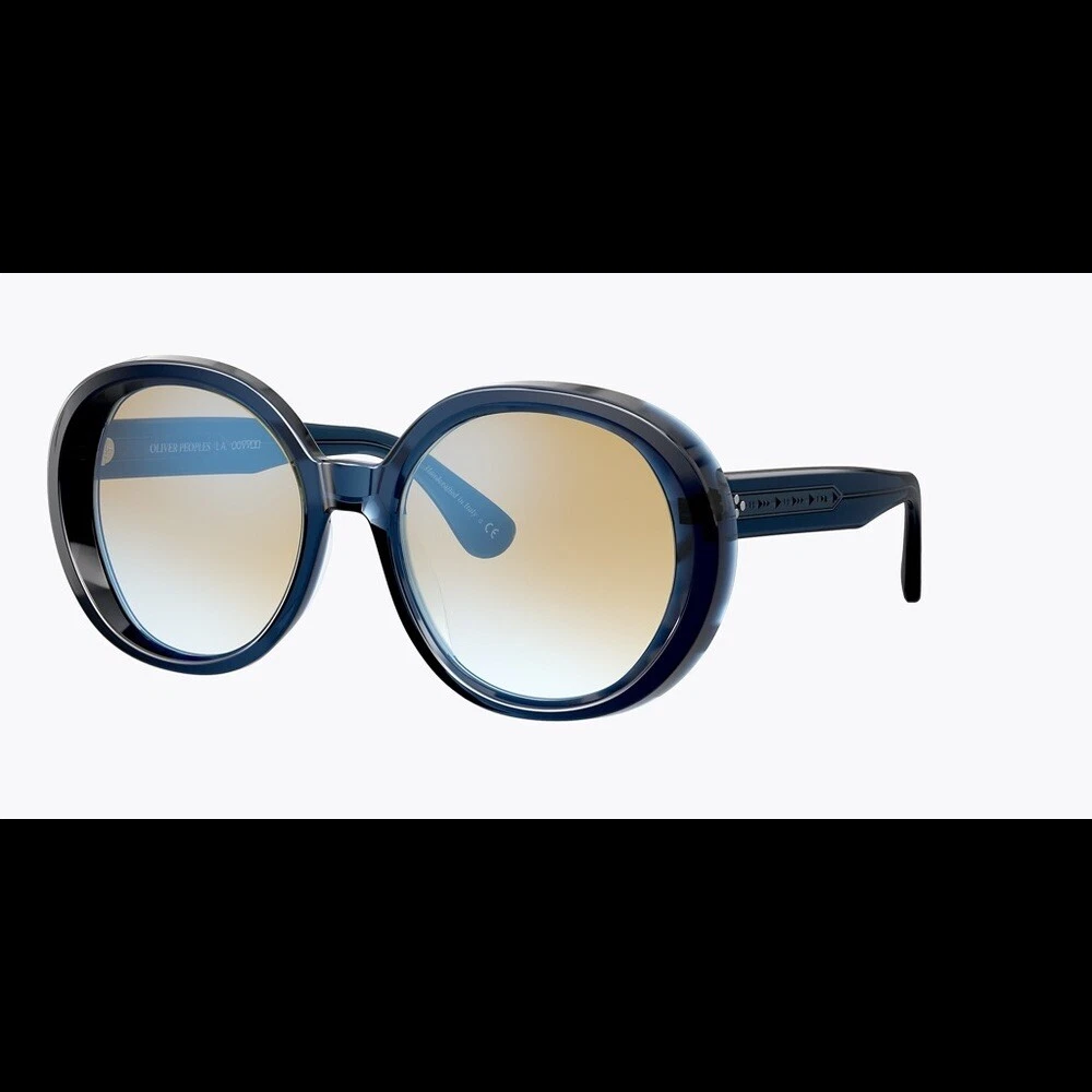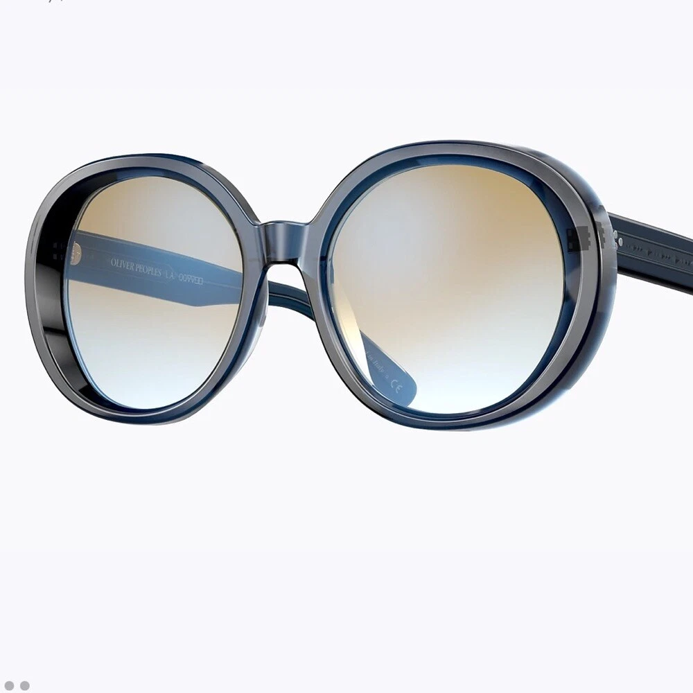 OLIVER PEOPLES LEIDY SUNGLASSES OV5426SU 1644K6 56-20-145 EUC Excellent excellent condition Navy (so dark it looks black) with yellow gradient lenses The Oliver Peoples // Leidy (OV5426SU) is inspired by the 1970's Hollywood Glam. An ultra feminine frame, the rounded lens shape is oversized and offers and extreme look. The acetate is unique in the way that is constructed - from the side view the acetate is thick highlighting the rich, custom colors and from the front, a reverse bevel is seen giving extra dimension to the style. Handmade in Italy.