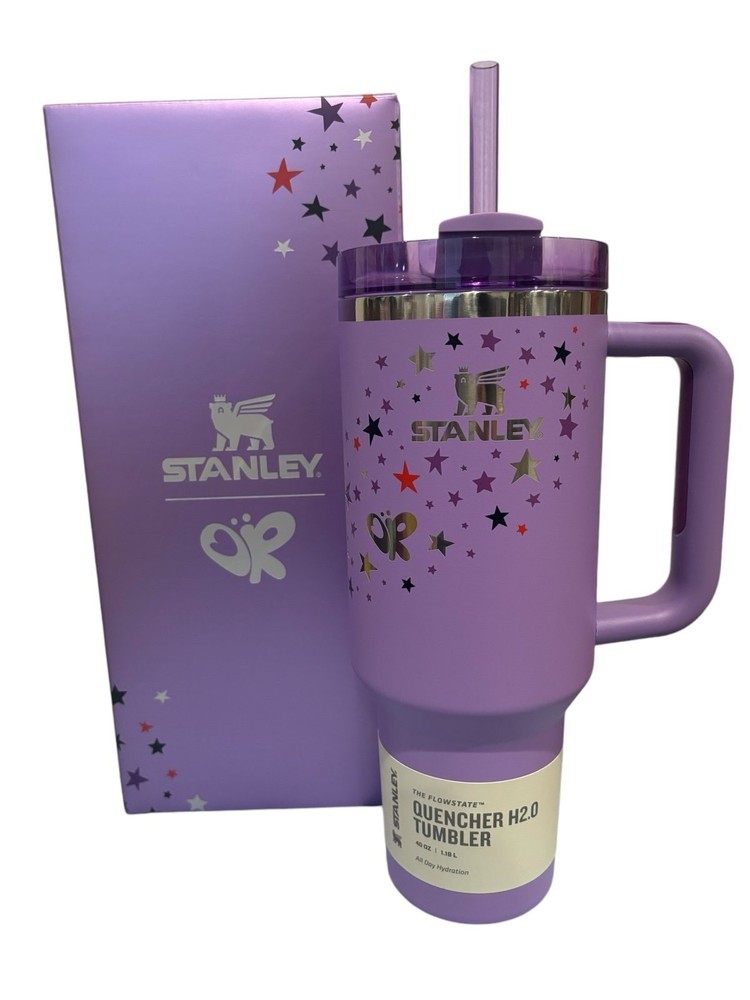 The Olivia Rodrigo X Stanley 40 oz Tumbler Cup is a stylish and functional beverage container made of BPA-free plastic and stainless steel. With a generous capacity of 40 oz, this tumbler is suitable for both hot and cold drinks, making it versatile for all your beverage needs. The purple color and matching straw add a fun and trendy touch, while the brand's reputation for quality ensures durability and reliability. This tumbler is perfect for on-the-go use and is proudly made in the USA.