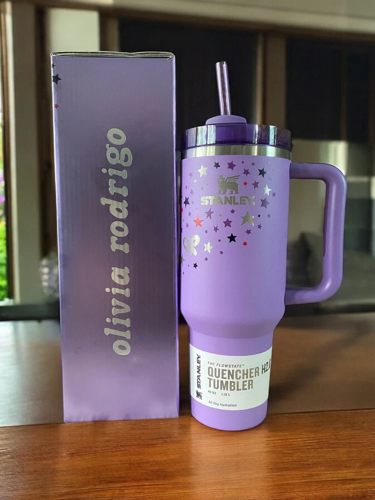 This Olivia Rodrigo Stanley Cup is a must-have for any collector or fan of the popular TikTok star. Made by the renowned brand Stanley, this cup is a perfect addition to your dinnerware and serveware collection. It features a stunning design that showcases Olivia Rodrigo's unique style and personality. The cup is made of high-quality materials and is built to last. It is perfect for enjoying your favorite hot beverage, whether it's tea, coffee, or cocoa. This collectible item is a great way to show your support for Olivia Rodrigo and to add a touch of personality to your kitchen.