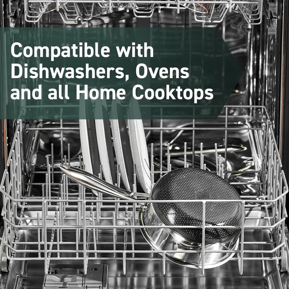 HexClad's patented hybrid tech utilizes tri-ply construction – aluminum between two layers of stainless-steel - laser-etched with our hexagonal nonstick surface to deliver the searing power of stainless, durability of cast-iron and easy cleanup of nonstick. Sweet and petite, our Hybrid 1-Quart Saucepan is ideal for making a couple servings of hot chocolate, reducing simple syrups and compotes, melting butter, making gravy and reheating soup for one. Use your HexClad cookware on any home cooktop or stovetop, including induction. Every piece is also scratch-resistant, dishwasher-safe, and oven-safe up to 500°F. (Lids are oven-safe up to 400°F.) HexClad products that are sold by HexClad Cookware are backed by a lifetime warranty from manufacturer's defects. (Commercial and restaurant use excluded). Your purchase includes one HexClad 1 Quart Saucepan and one Tempered Glass Lid. The 1 Quart Saucepan measures approximately 6 inches in diameter, 3 inches in height and 1.5 lbs in weight.