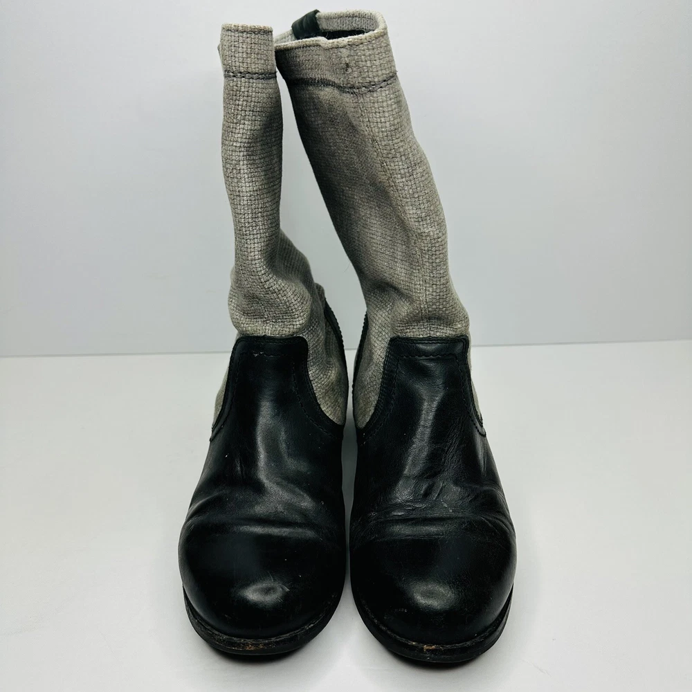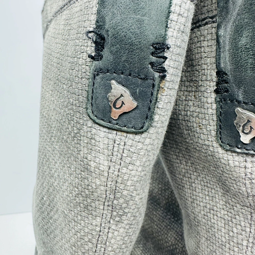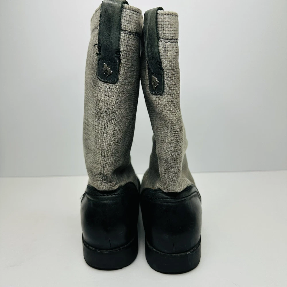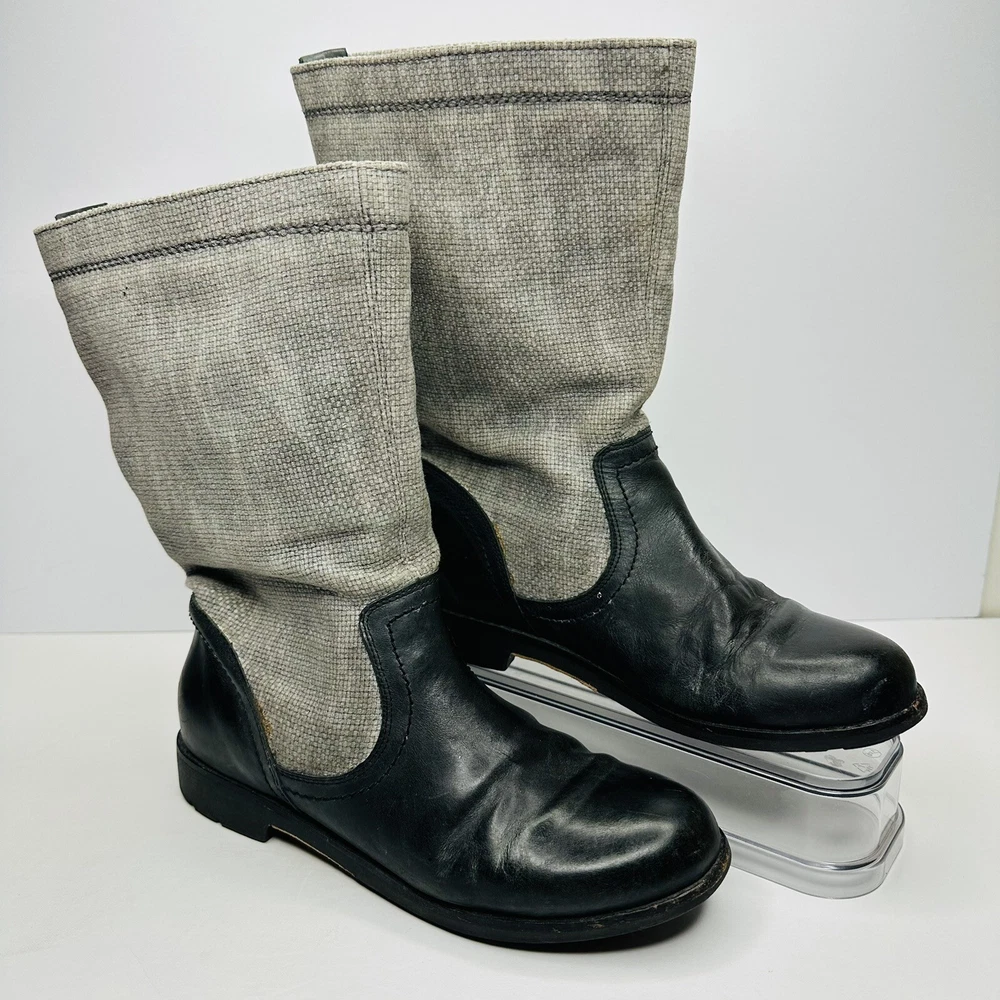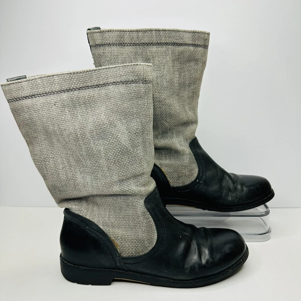 OluKai Haleakala Tall Riding Boots Womens Size 9 Black Gray Leather Canvas Boots. Good used condition. See pictures for details.