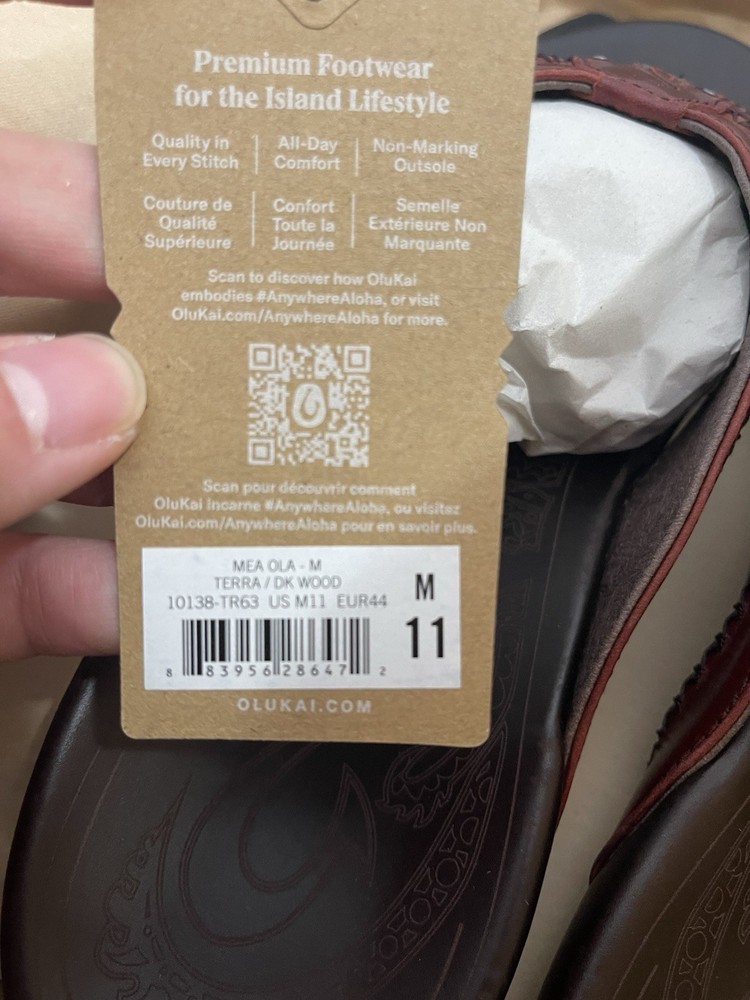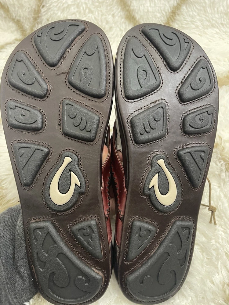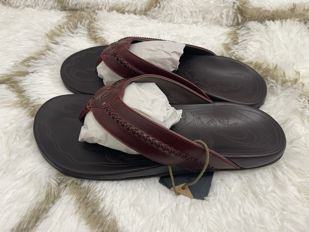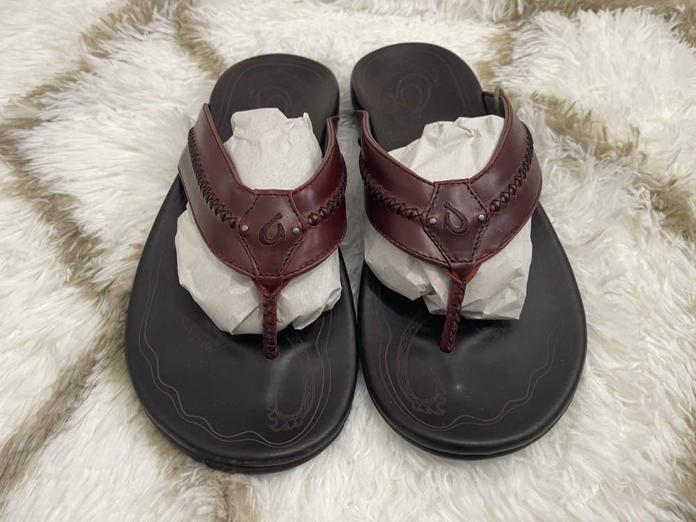 Brand New with box 100% authentic Men's size 11 Color Terra / Dark Wood All sales are final, pleae make sure it's the right size before ordering Fast shipping via UPS Ground OluKai Craftsmanship: Includes octopus-inspired laser-etched artwork on the footbed, canoe lash whipstitching, and an embroidered logo for a distinctive touch. Comfort and Fit: Features rich leather straps, a soft microfiber lining, and a comfortable handsewn toe post for a snug fit. Premium Materials: Crafted with premium full-grain leather for a luxurious and durable finish.