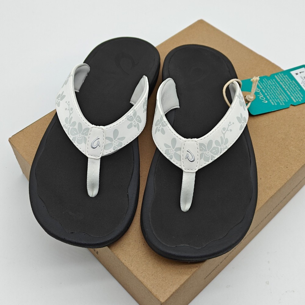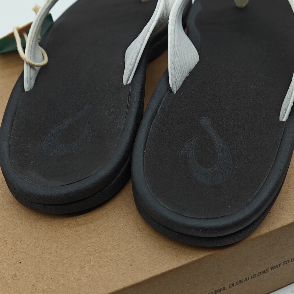 OluKai Kulapa Kai Womens Size 7-11 White Black Flip Flops 20198-4R40