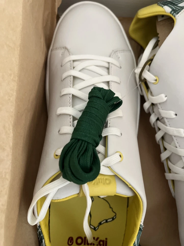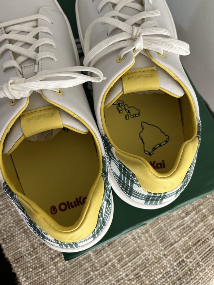 The Olukai 2025 “The Masters” Wai‘alae Golf Shoes in Bright White/Medium Green Size 12 are a stylish and functional choice for any golfer. Featuring a lace-up closure, leather upper material, and a rubber cleat for traction on the golf course, these sneakers offer comfort, cushioning, and moisture-wicking features. With a limited edition design, these athletic shoes are designed for performance and are suitable for all seasons. Perfect for avid golfers looking for both style and functionality in their footwear.