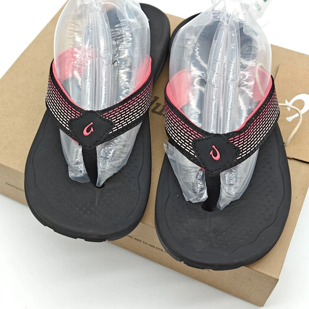 $ 21.12OluKai Kulapa Kai Womens Size 7 Pink Black Flip Flops 20198-4Q40