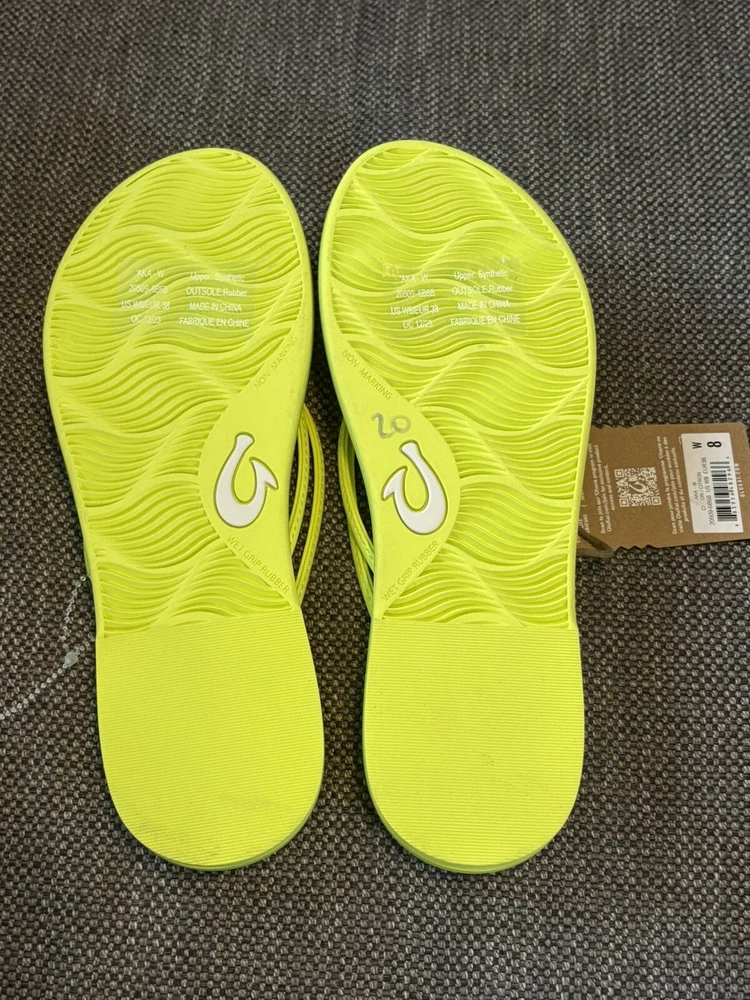 OLUKAI CITRON/CITRON 'AKA KNOTTED STRAPS BEACH/POOL FLIP FLOP SANDALS 8 NWT. Shipped with USPS Ground Advantage.