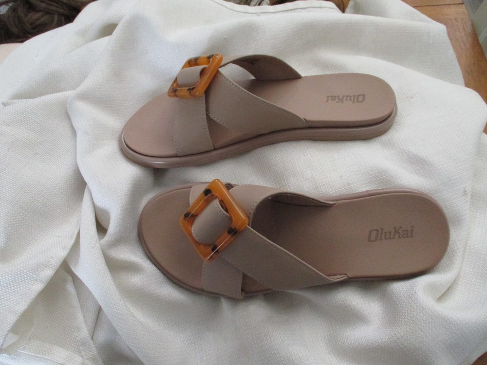 YOU ARE LOOKING AT good preowned CONDITION : Olukai La‘i Tortoise Shell Criss Cross Slide Sandals Taupe/Taupe Women's Size 7 usa SMOKE FREE USA SHIPPING ONLY. PLEASE CONTACT ME THROUGH E-BAY ONLY. SEE MY OTHER ITEMS IN AUCTION. I AM HAPPY TO COMBINE SHIPPING. THANKS FOR LOOKING. PLEASE ASK QUESTIONS. I TRY TO DESCRIBE ACCURATELY AND WANT YOU TO BE HAPPY WITH PURCHASE SO IF ANY PROBLEMS, PLEASE CONTACT ME.