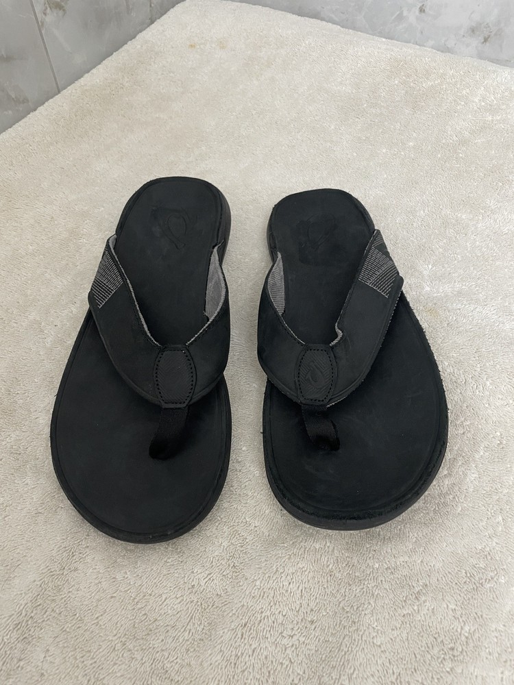 The Olukai Men's Tuahine Leather Flip Flop Sandals in Black are a stylish and comfortable choice for men. With a leather upper and outsole, these sandals provide durability and a quality feel. The flip flop style offers a relaxed fit, making them perfect for casual wear. The size 10 in US and 43 in EU ensures a comfortable fit for most men. The Olukai brand is known for its high-quality footwear, making these sandals a reliable choice for everyday wear. New without hang tags