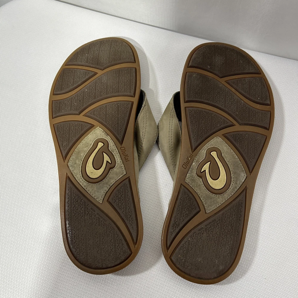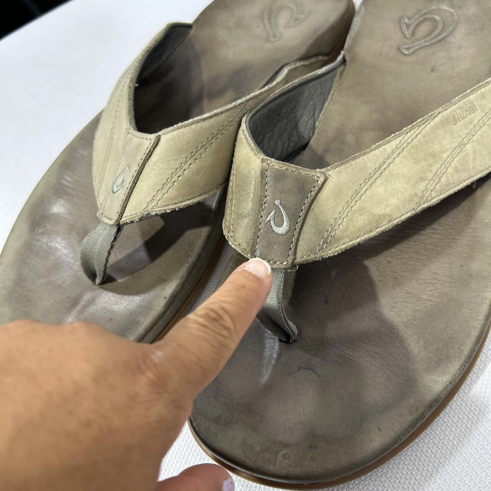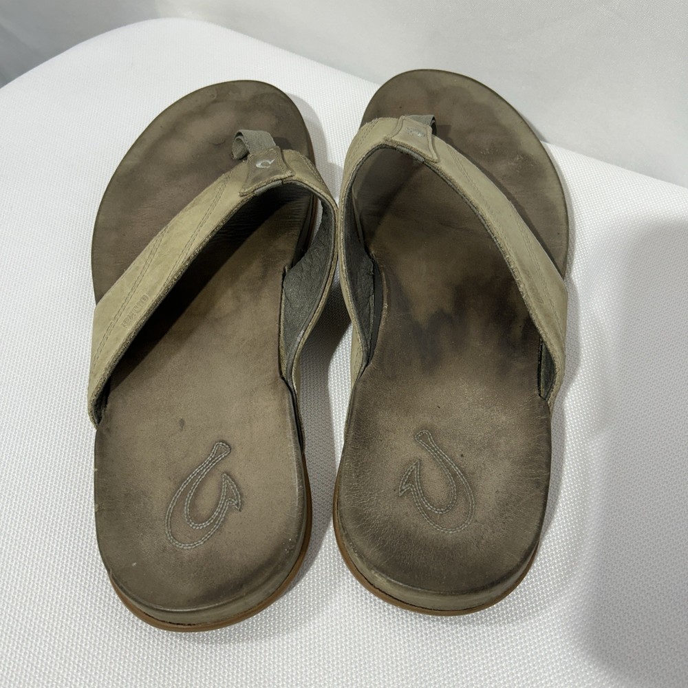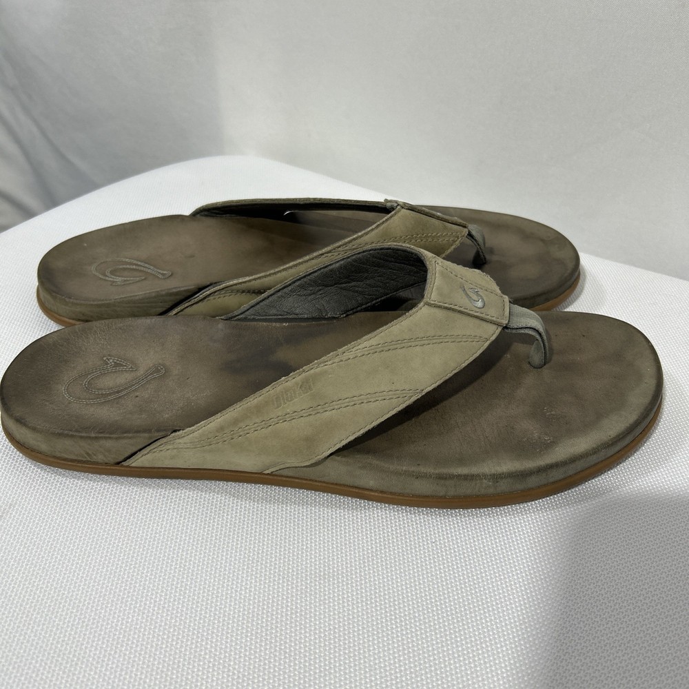 Olukai Tuahine Mens Size 10 Leather Flip Flops Beach Sandals Hunter NWT