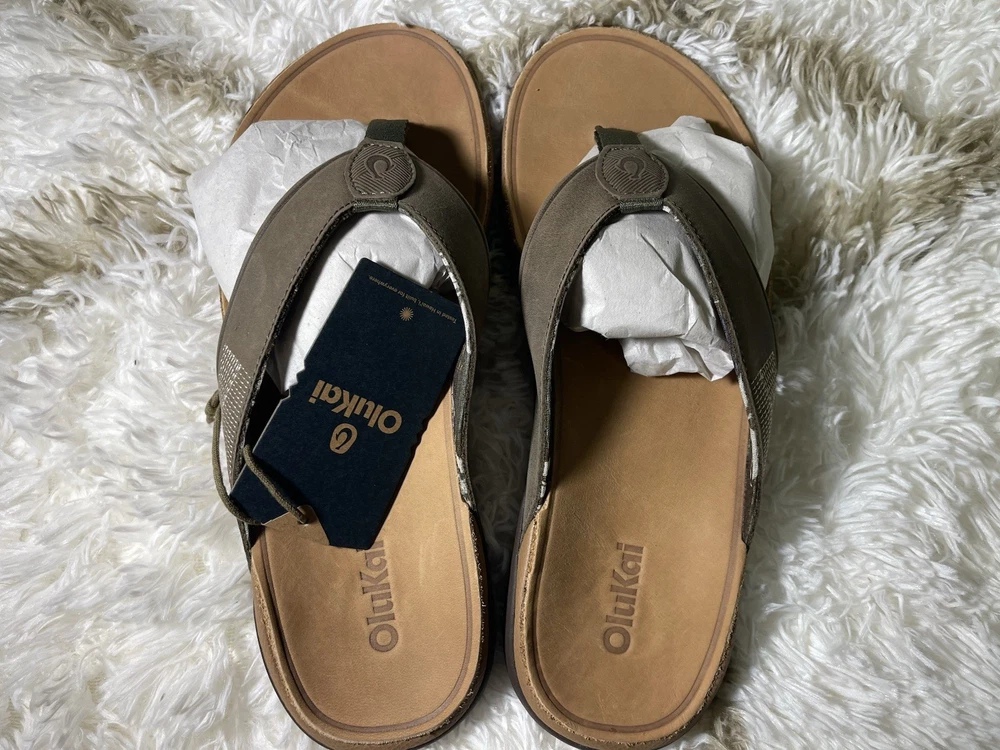 Brand New with box 100% authentic Men's size 10 Color Hunter/Golden Sand All sales are final, pleae make sure it's the right size before ordering Fast shipping via UPS Ground Key Features: Waterproof Leather: Made with waterproof full-grain leather, it is ideal for beach activities and water sports. Premium Comfort: Features a soft stretch mesh lining and a comfortable nylon toe post for superior comfort. Hawaiian-Inspired Details: Custom upper stitching design inspired by the cool breeze of Hawaiian winds.