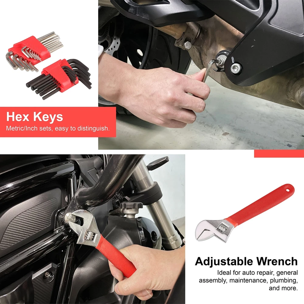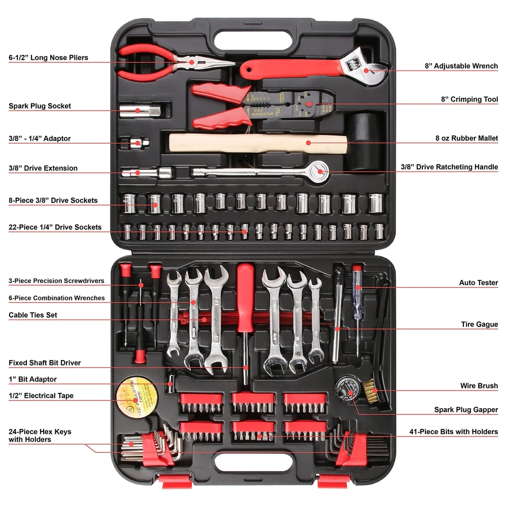 Olympia Tools 122-Piece Tool Kit, General Household Hand Tool Set with Solid Carrying Tool Box, Auto Repair Tool Sets Product Details Brand: Olympia Tools Number of Items: 122 Head Style: Phillips Material: Alloy Steel Color: Red, Silver, Black Brand: Olympia Tools Number of Items: 122 Head Style: Phillips Material: Alloy Steel Color: Red, Silver, Black Recommended Uses For Product: Home Improvement, Auto Repair Special Feature: Magnetic Tip Model Name: Olympia Tools UPC: 883652809999 Manufacturer: Olympia Tools Part Number: 80-999 Item Weight: 8.93 pounds Package Dimensions: 15.98 x 13.5 x 3.5 inches Country of Origin: China Item model number: 80-999 Is Discontinued By Manufacturer: No Power Source: Hand Powered Item Package Quantity: 1 Special Features: Magnetic Tip Included Components: 41 - 1" BITS WITH 6 INJECTION HOLDERS Batteries Included?: No Batteries Required?: No Date First Available: October 18, 2014 HIGH QUALITY & STANDARDS: Forged from high-quality steel, strength, durability, anti-corrosion protection. All the tools meet or exceed ANSI critical standards BACK ON ROAD: For car, bike and engine repairs and maintenance, our Tool Kit Set with SAE and Metric Tools contains a carefully selected assortment of the most reached for DIY hand tools and accessories. Complete in a tool box carry case for easy storage in the trunk, boot or under a seat MADE TO LAST: Our durable and long-lasting tools help you with home, garage & industrial projects. With professional-grade quality, easily repair & fix issues with our tool cabinet essentials. THE RIGHT TOOL FOR THE JOB: We engineer a range of bolt cutters, clamps, chisels, folding carts, hammers, pliers, saws, screwdrivers, tape measures, utility knives, vises, bolt cutters, saws & wrenches. THE RIGHT TOOL FOR THE JOB: We engineer a range of bolt cutters, clamps, chisels, folding carts, hammers, pliers, saws, screwdrivers, tape measures, utility knives, vises, bolt cutters, saws & wrenches. SUPERIOR INSTRUMENTS: Olympia Tools provides quality & innovative hand & specialty tools, tool accessories & outdoor equipment for construction, woodworking, mechanical maintenance & home repair. SELECTION OF POPULAR TOOLS FOR HOME, GARAGE, & JOB SITE BLOW MOLD CASE FOR EASY STORAGE DROP FORGED HEAD TREATED ALLOY STEEL