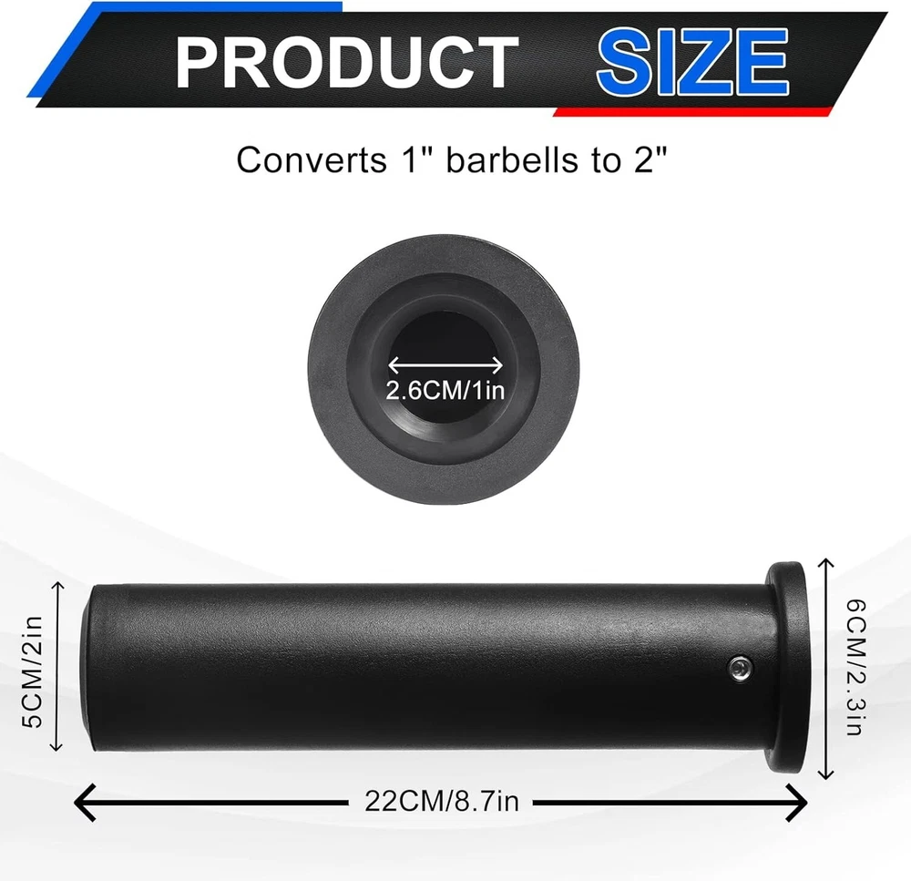 Olympic Adapter Sleeve 2 PCS Converts 1" Standard Weight Plate Posts to 2" Olym Style: 2 Pcs Material: Nylon Item Weight: 0.46 Kilograms Grip Type: Knurled Speaker Cutout Diameter or Length: 1 Inches Grip Size Standard Weight Limit 600 Pounds Sleeve Length 2 Inches UPGRADE QUALITY: Made from heavy duty and high quality nylon, To withstand up to 600 pounds of weight. Provides you with long-lasting performance and security. PERFECT LENGTH: The 8-inch length can fit most older style barbells, curl bars and plate loaded weight machines. End cap is REMOVABLE for use with longer 1" standard posts! EASILY SECURED: This Olympic adapter socket has a hex bolt locking feature,increase its safety. Includes 2 allen key, please still refrain from overtightening. FITS OLYMPIC WEIGHT PLATES: Olympic 8" Adapter Sleeve - 2Pcs ,Converts 1" Standard barbell to 2" Olympic barbell bar. Includes 2 allen key. Return Policy: We offer a 30 day return policy from the receiving date. Please contact us for a Free Return Label. Please use our return label so it will go back to our supplier and we can do a refund or replacement afterwards. Feedback: Your satisfaction is very important to us! If you have any problem with your order, please contact us and we will do our very best to make you satisfied. As long as you are happy with your purchase, please leave a positive feedback for us. We will always leave you a positive feedback in return. If you have any problem with your purchase, please do not leave a negative feedback. Please Contact us ... and your issue will be solved quickly and positively We are a small family-owned business trying to make a living, not a huge company that does not care ... We will ALWAYS do our best for you!
